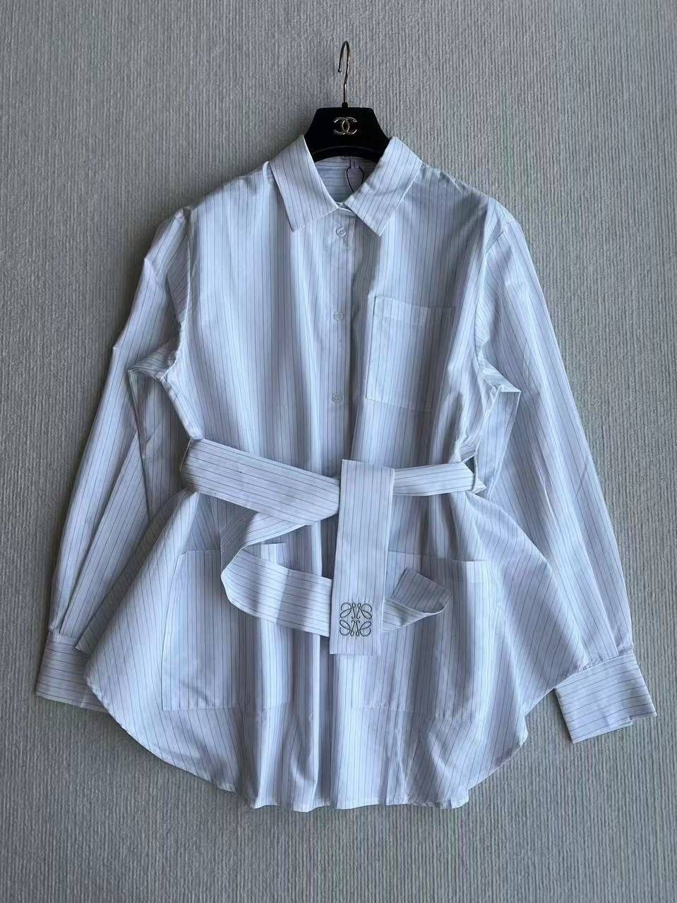 Белая женская рубашка Loewe - элегантное решение для дам, любящих комфорт и стиль в высшем классе.