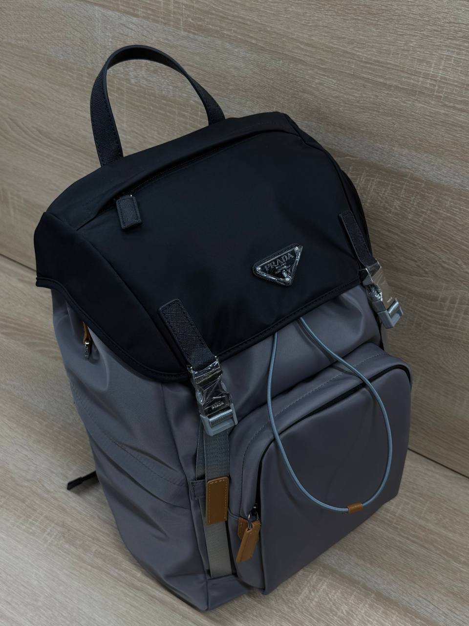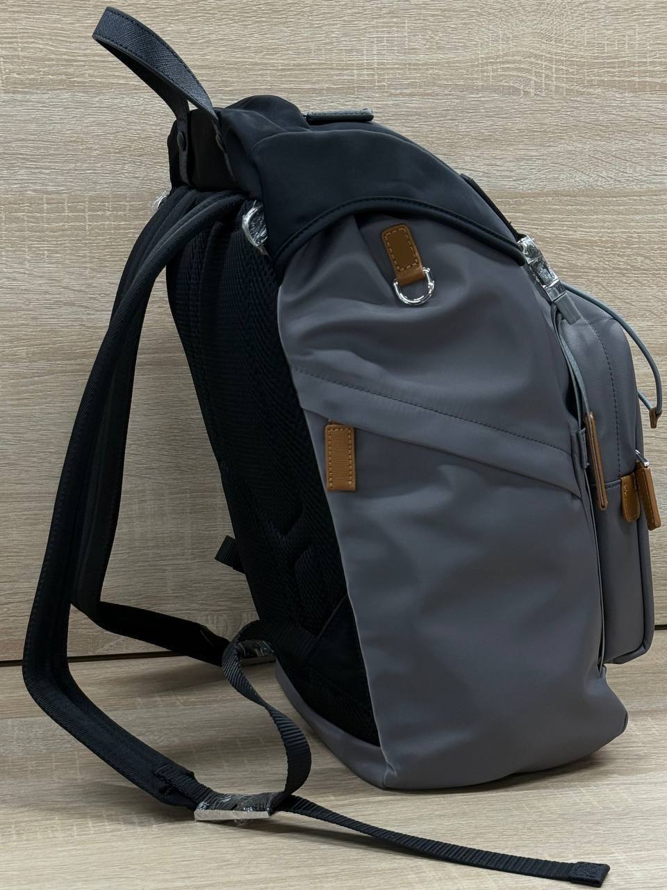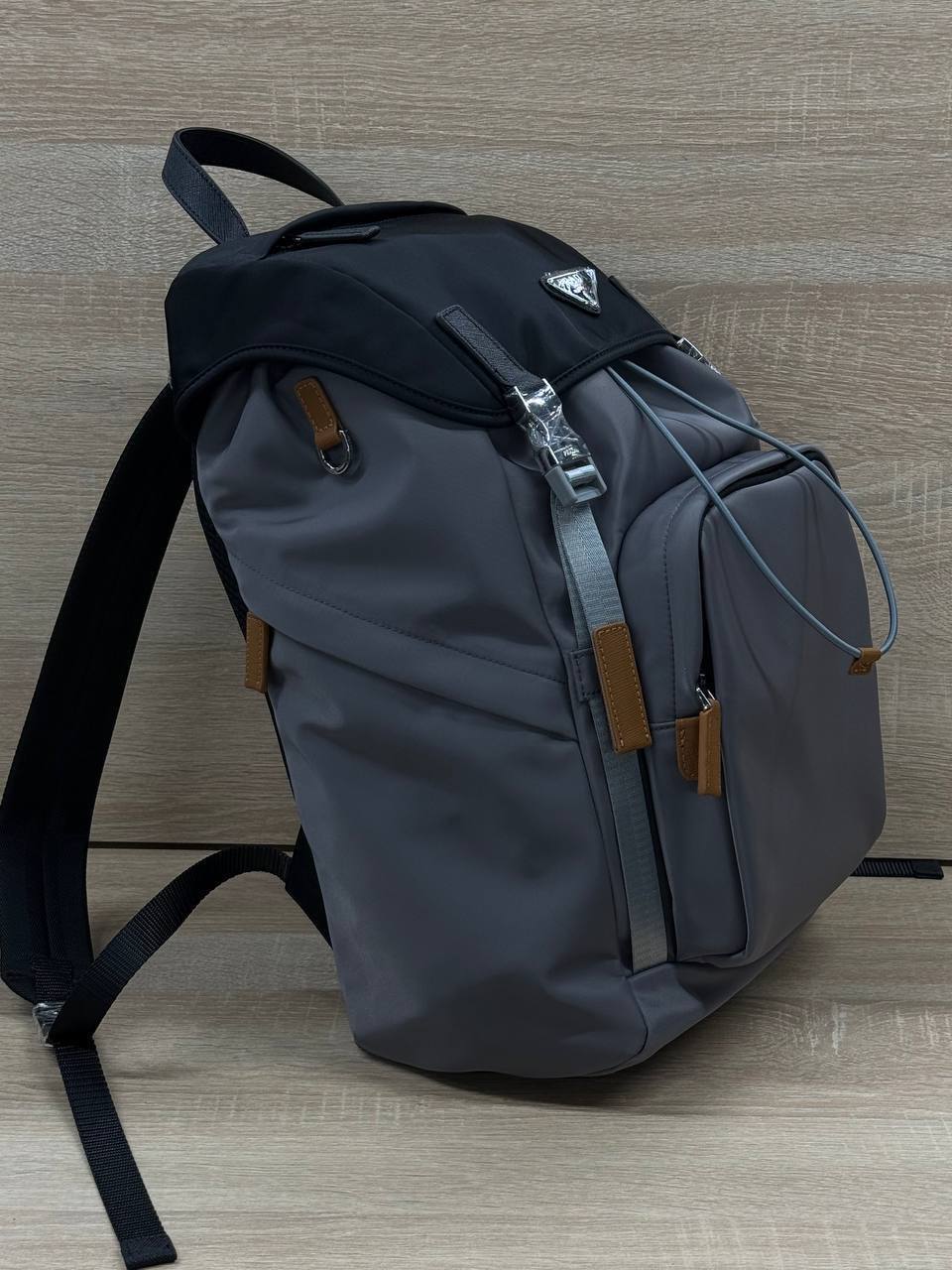 Для мужчины с вкусом - серый рюкзак Prada, размер 25х41х21 см