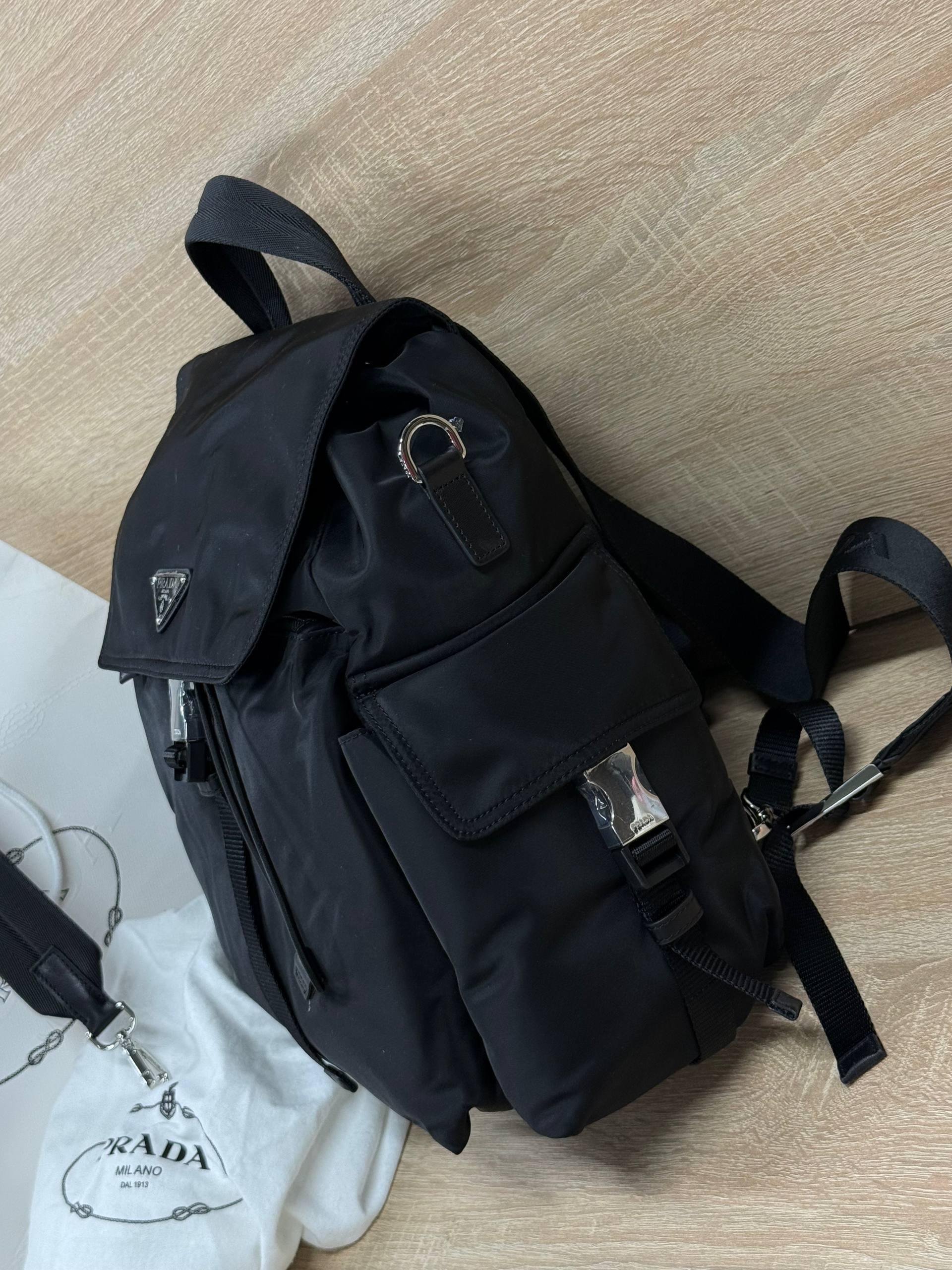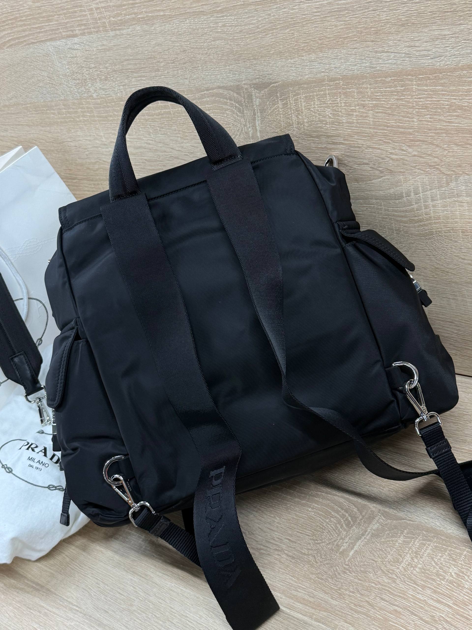 Мужской Prada чёрный рюкзак 38x32x19 см – воплощение элегантности и функциональности. Уникальный дизайн и премиальное качество. Идеальный аксессуар для современного мужчины.