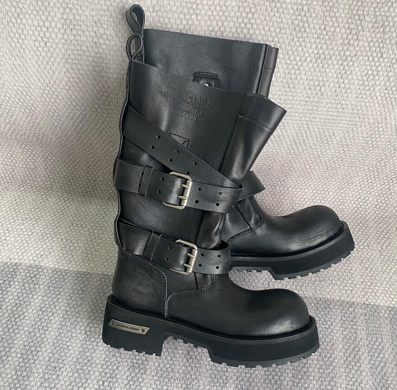 Balenciaga Женский Чёрные сапоги – воплощение люкс-эстетики. Массивная тракторная подошва, кожа и металлические пряжки создают дерзкий, уверенный образ. Инвестируйте в стиль!