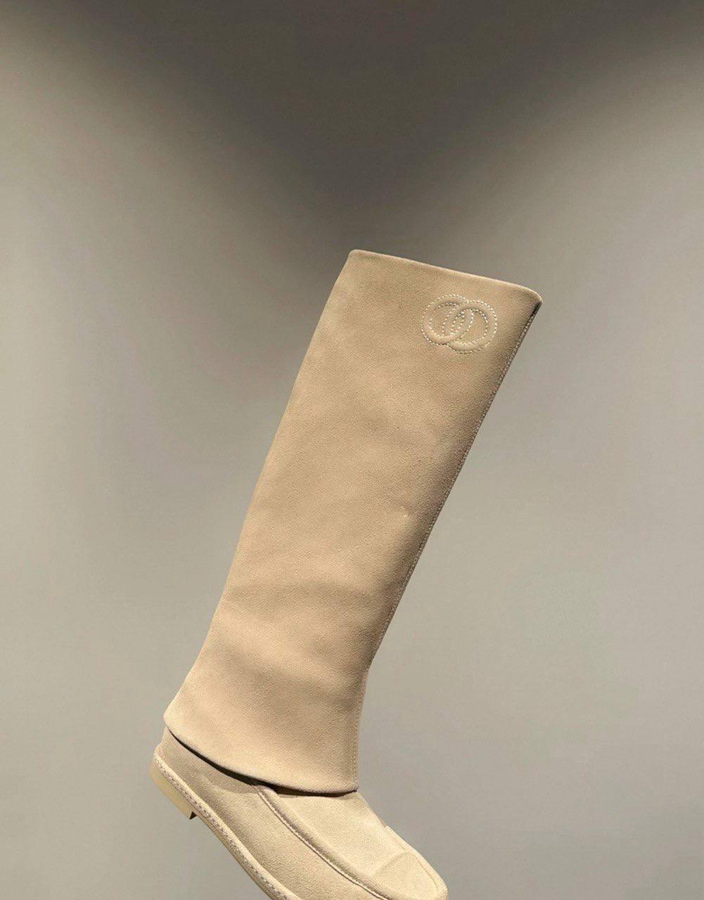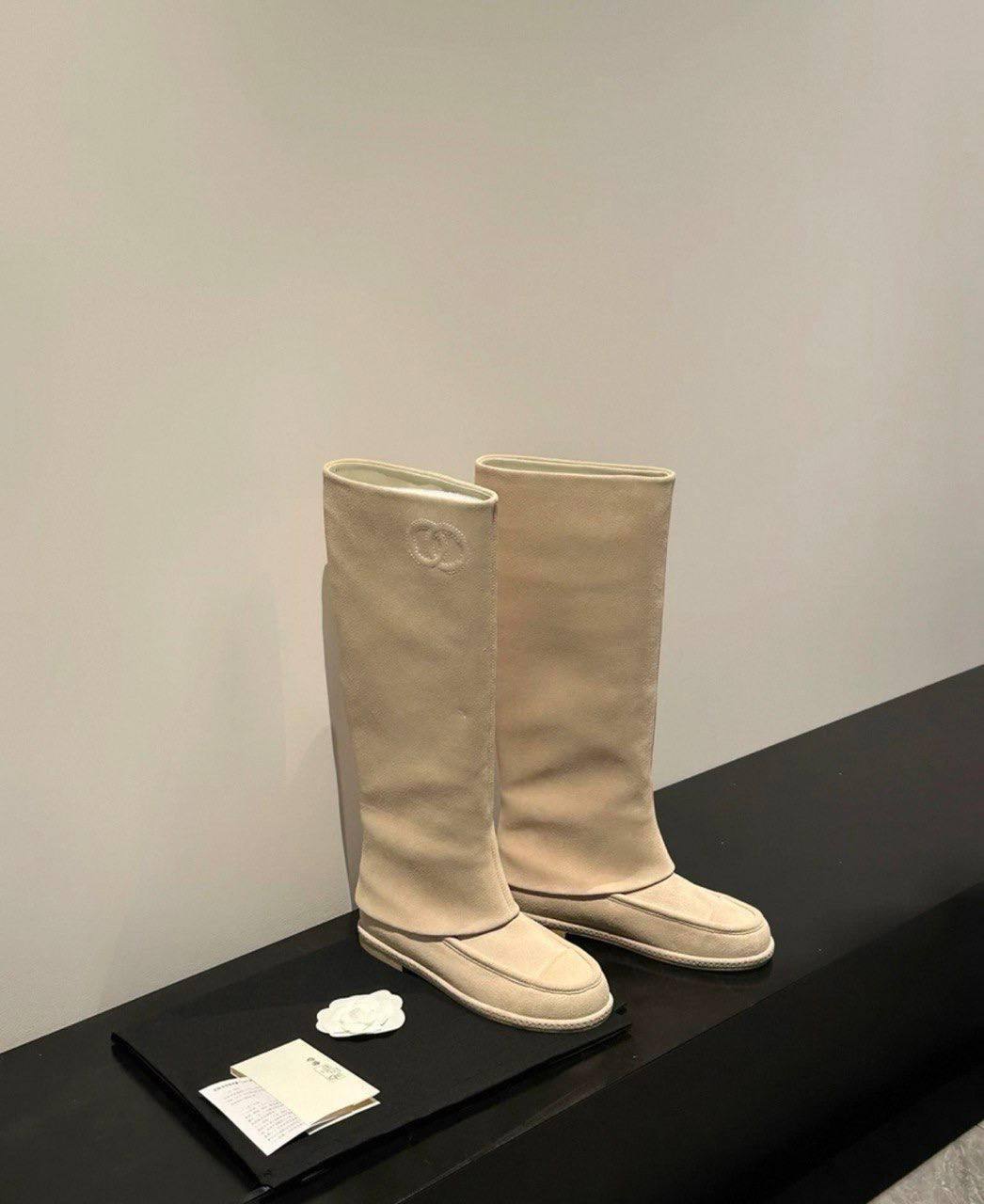 Женская сапога Chanel бежевая - Уникальный стиль для модной женщины, созданная мировым брендом Chanel.