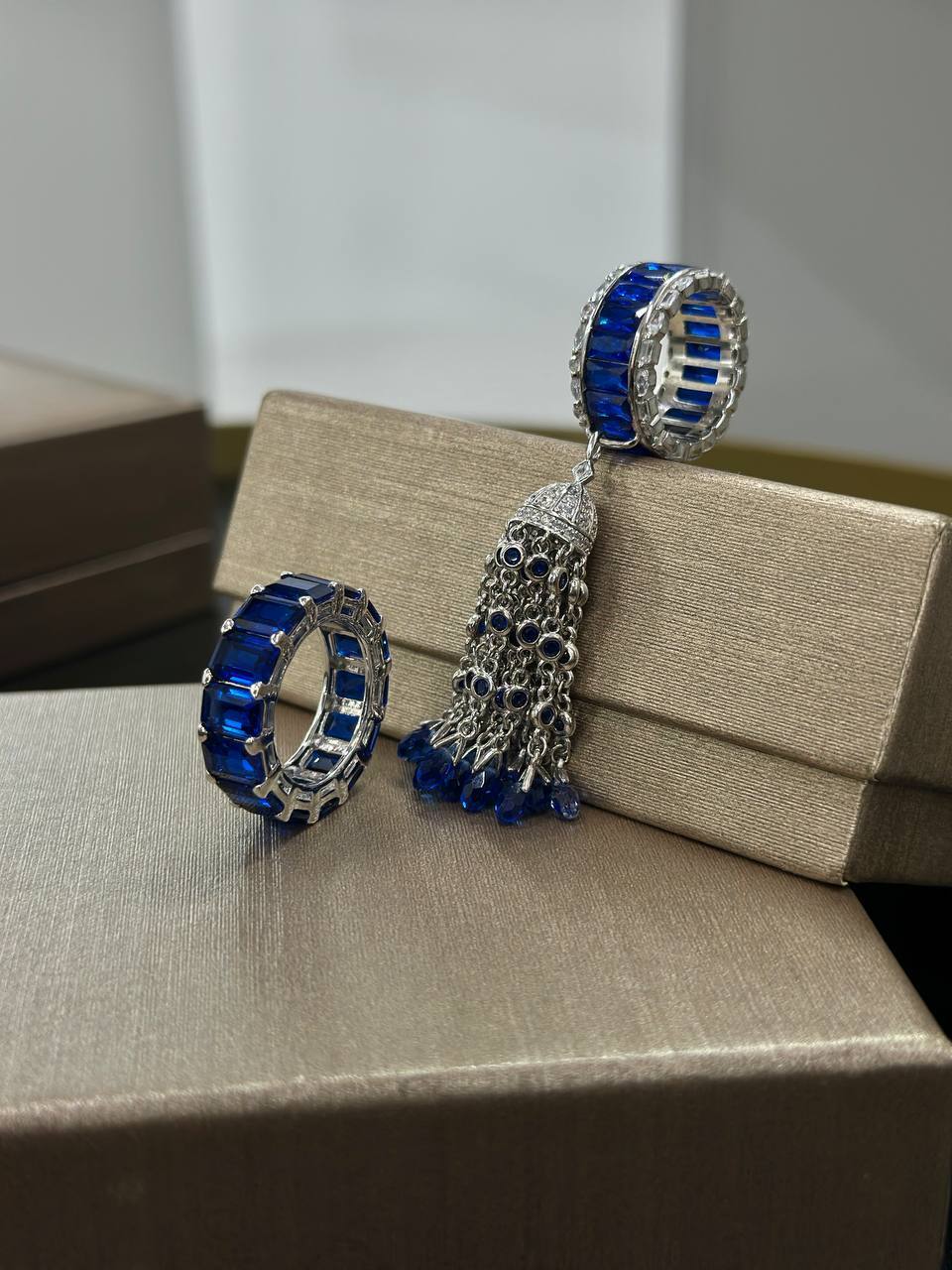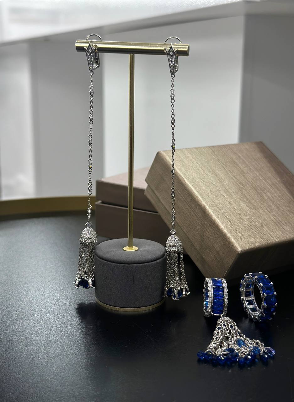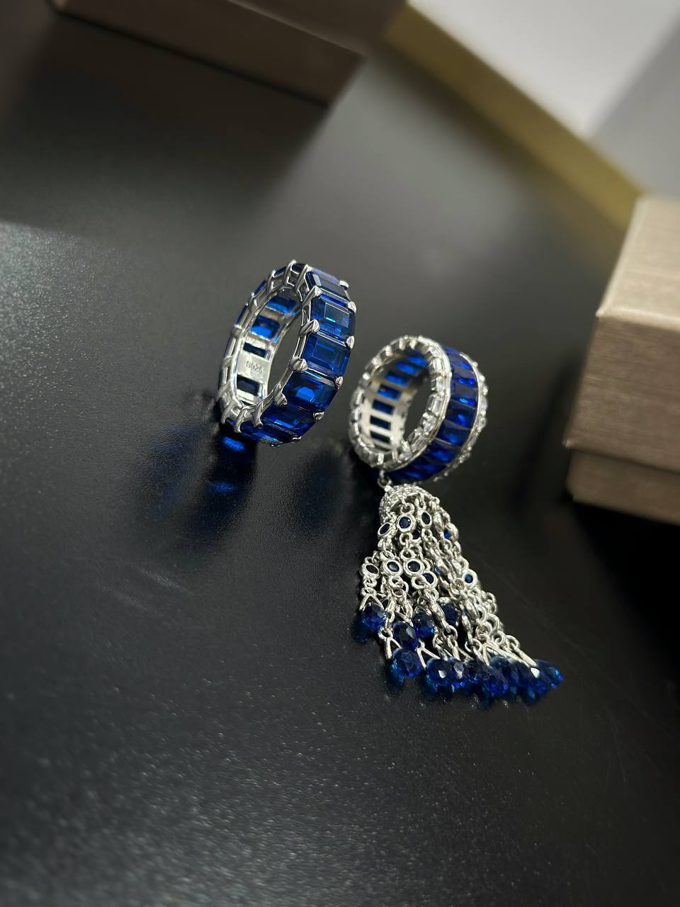 Итальянская коллекция украшений Yana Raskovalova. Изящные серьги-бабочки с синими кристаллами и длинными подвесками. Добавьте игривости в свой образ! Женские серьги Yana Raskovalova – идеальный акцент.