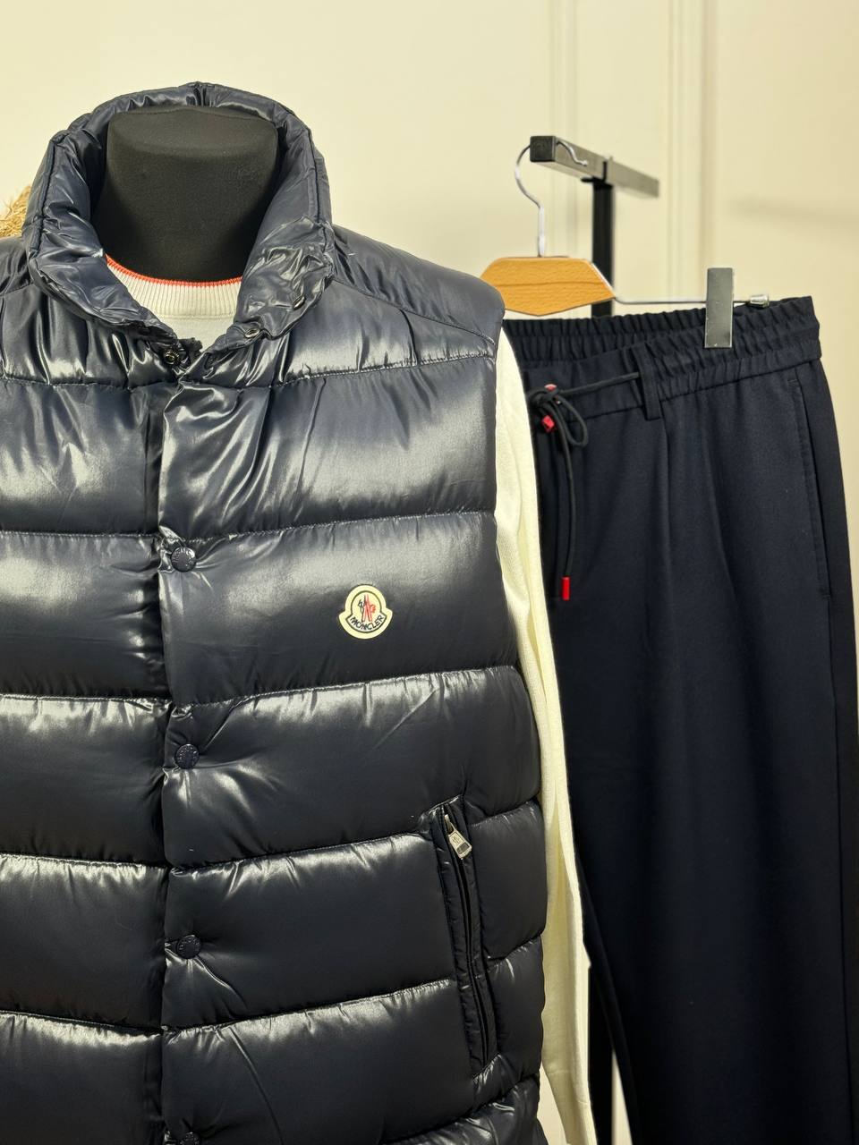 Мужская шапка Moncler - синезеленоватая коричневатосерая, идеальный выбор для мужчин с чувством стиля и приверженности комфорту.