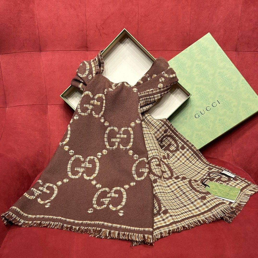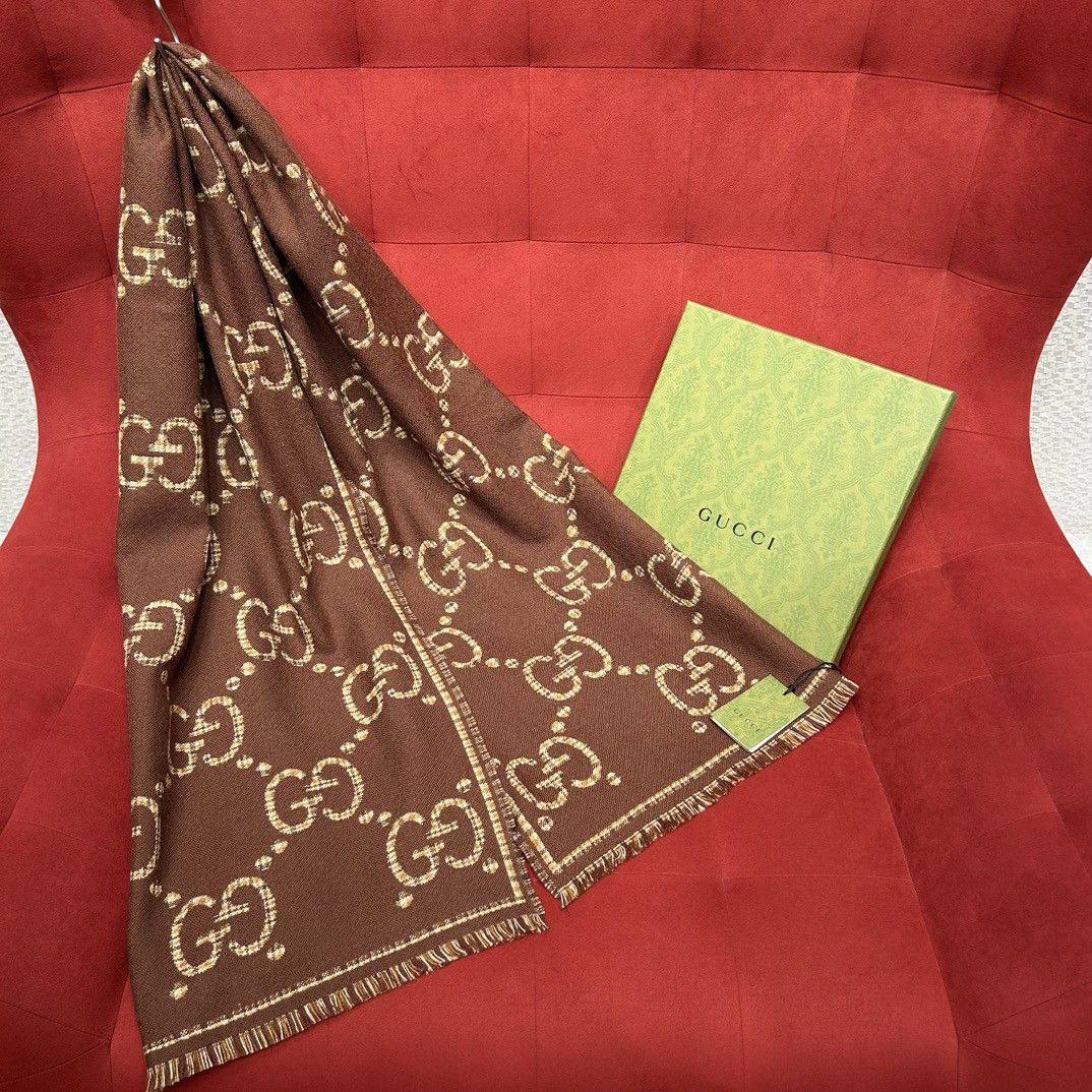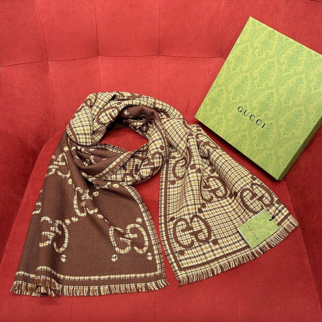 Бежево-коричневый шарф Gucci, классический стиль и высший комфорт для настоящего мужчины!