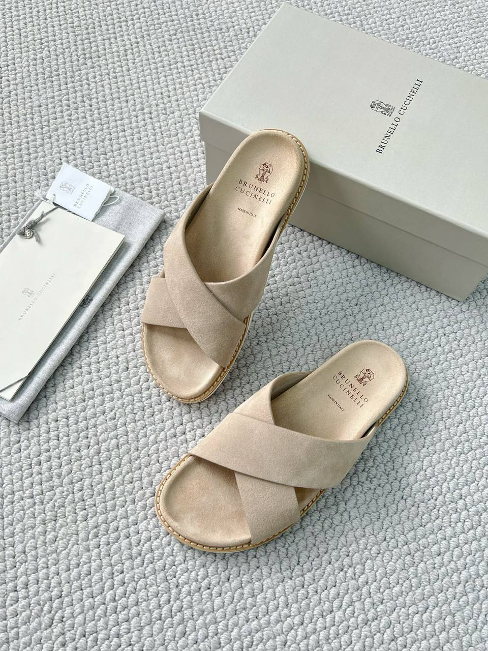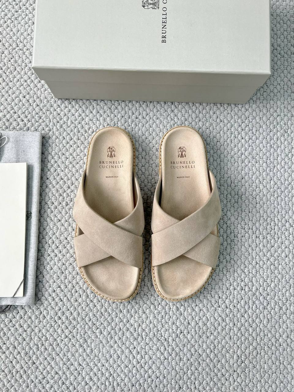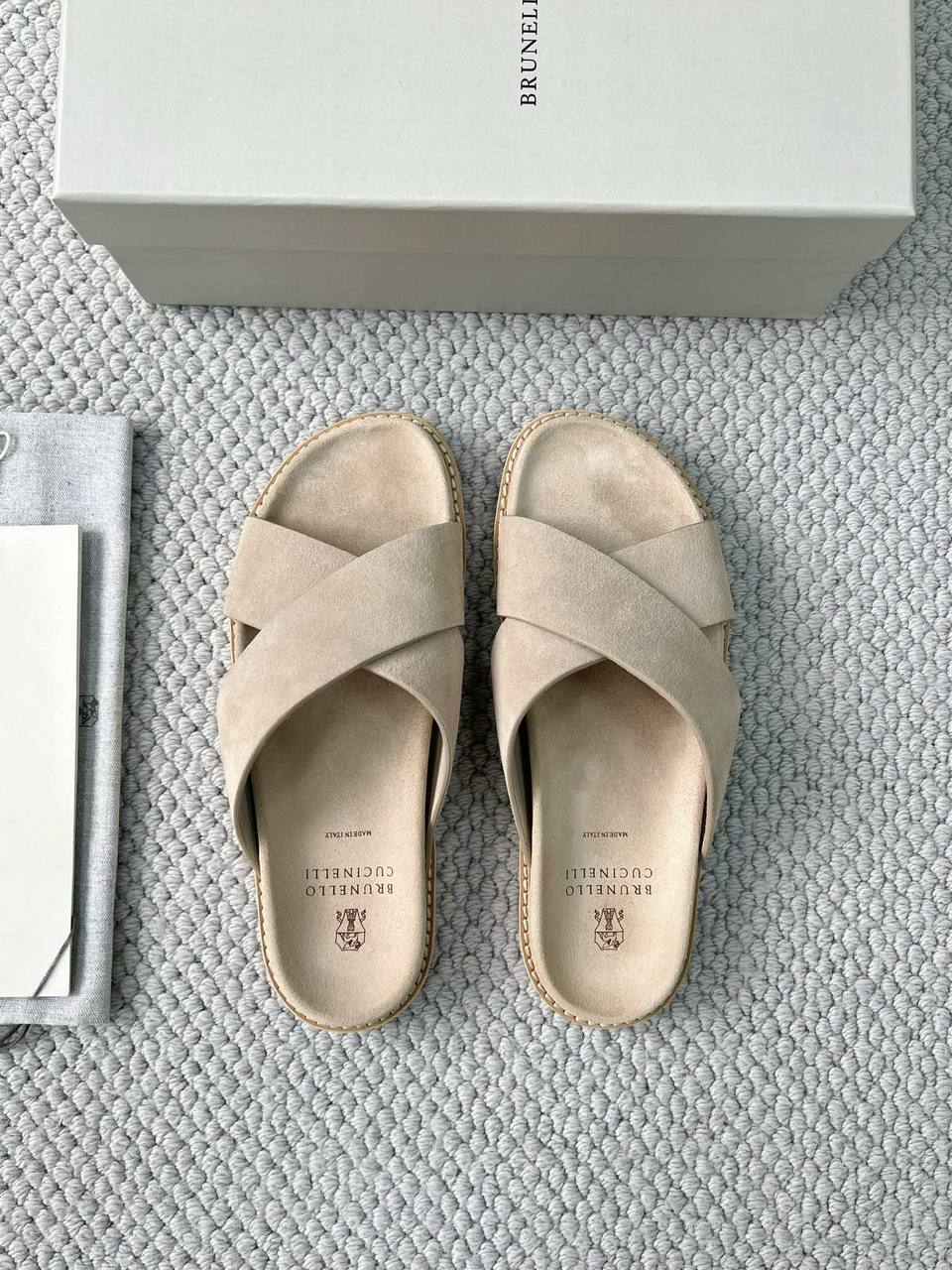Бежевые шлепанцы Brunello Cucinelli для мужчины. Практичное и стильное дополнение к повседневной одежде.