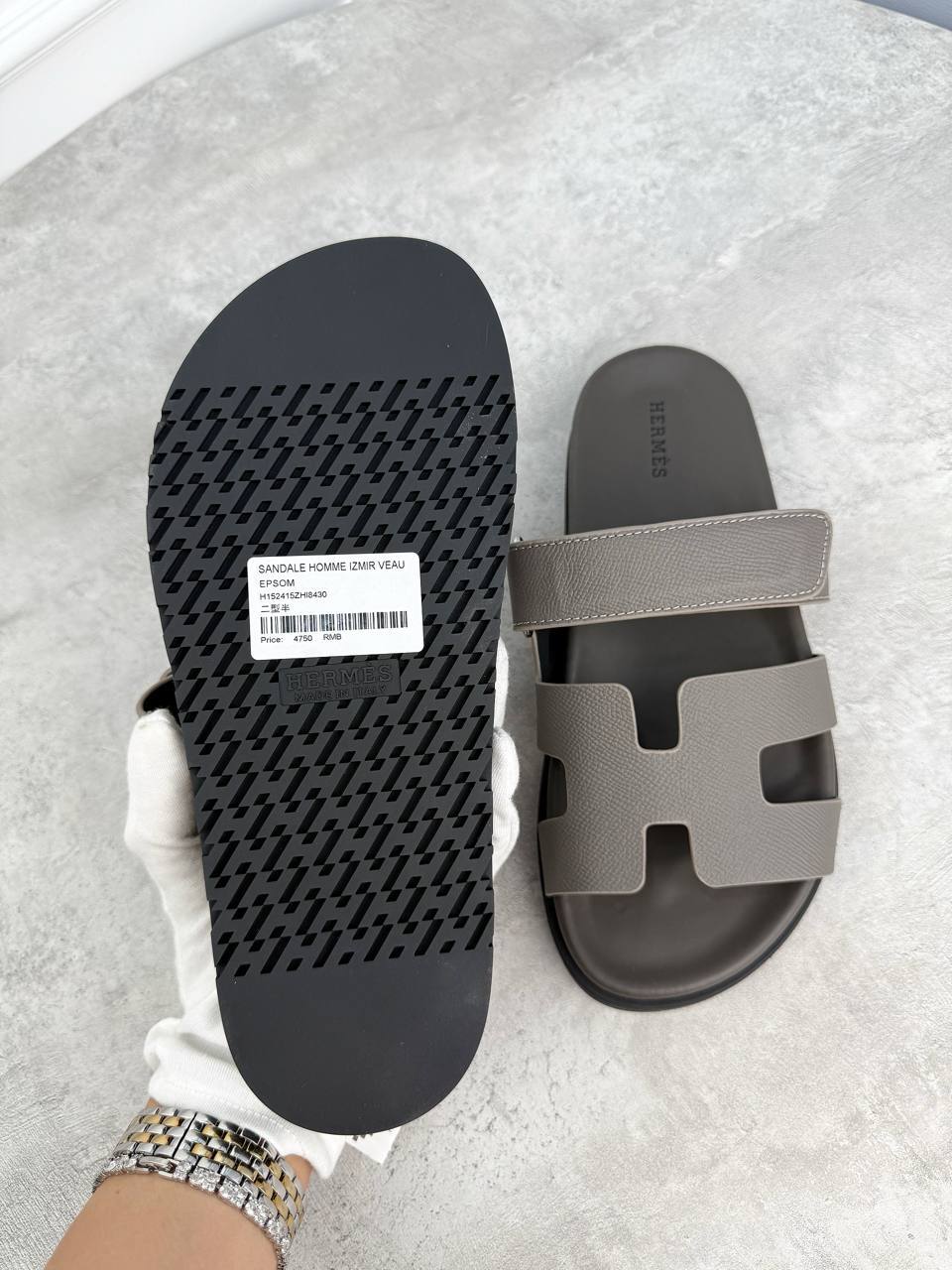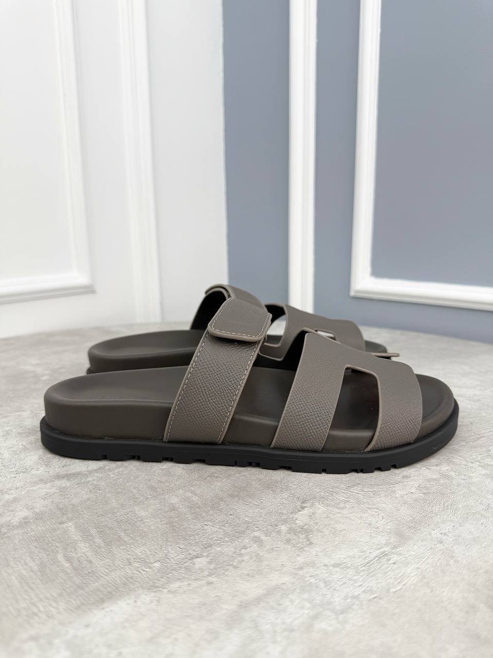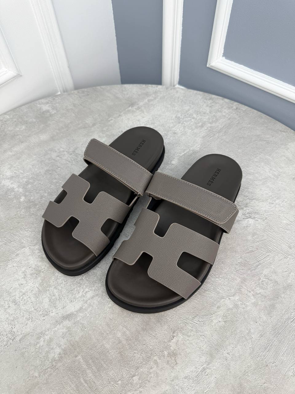 Для гурманов и ценителей стиля - мужские шлепанцы Hermes серый, сочетающий роскошь с лаконичным шиком.