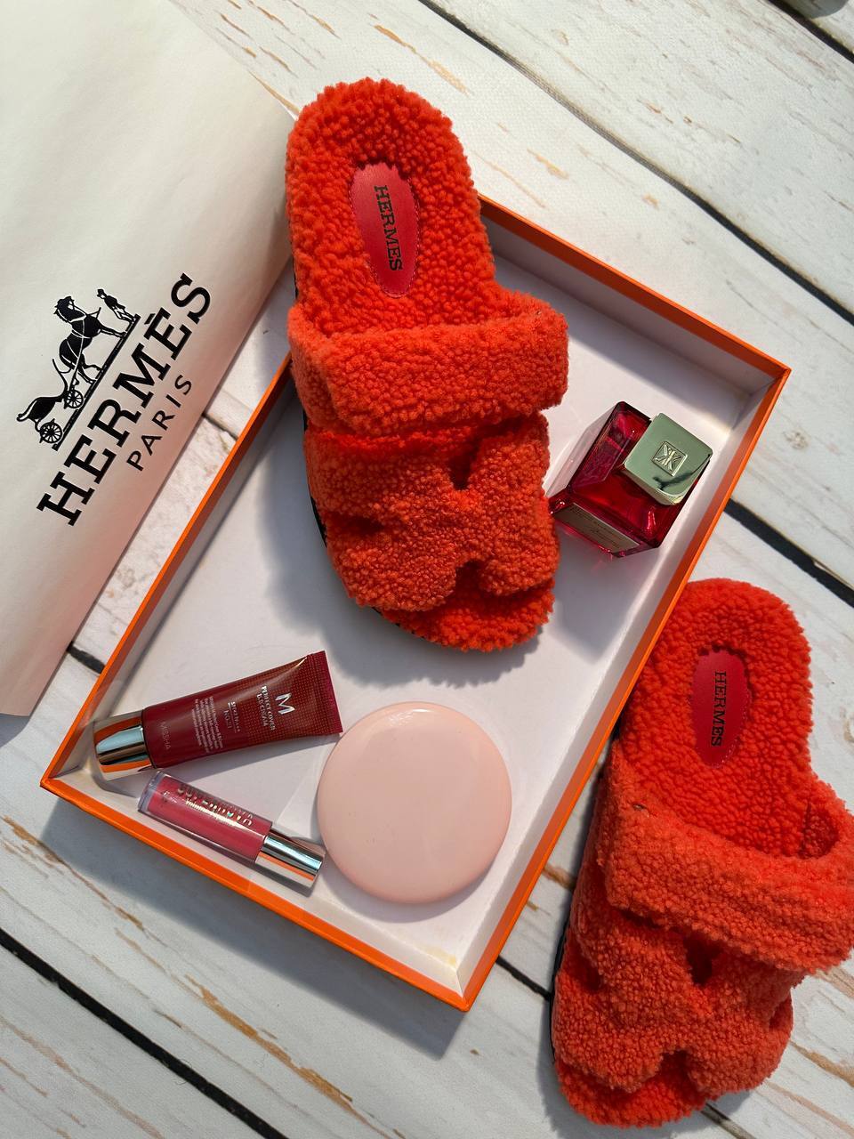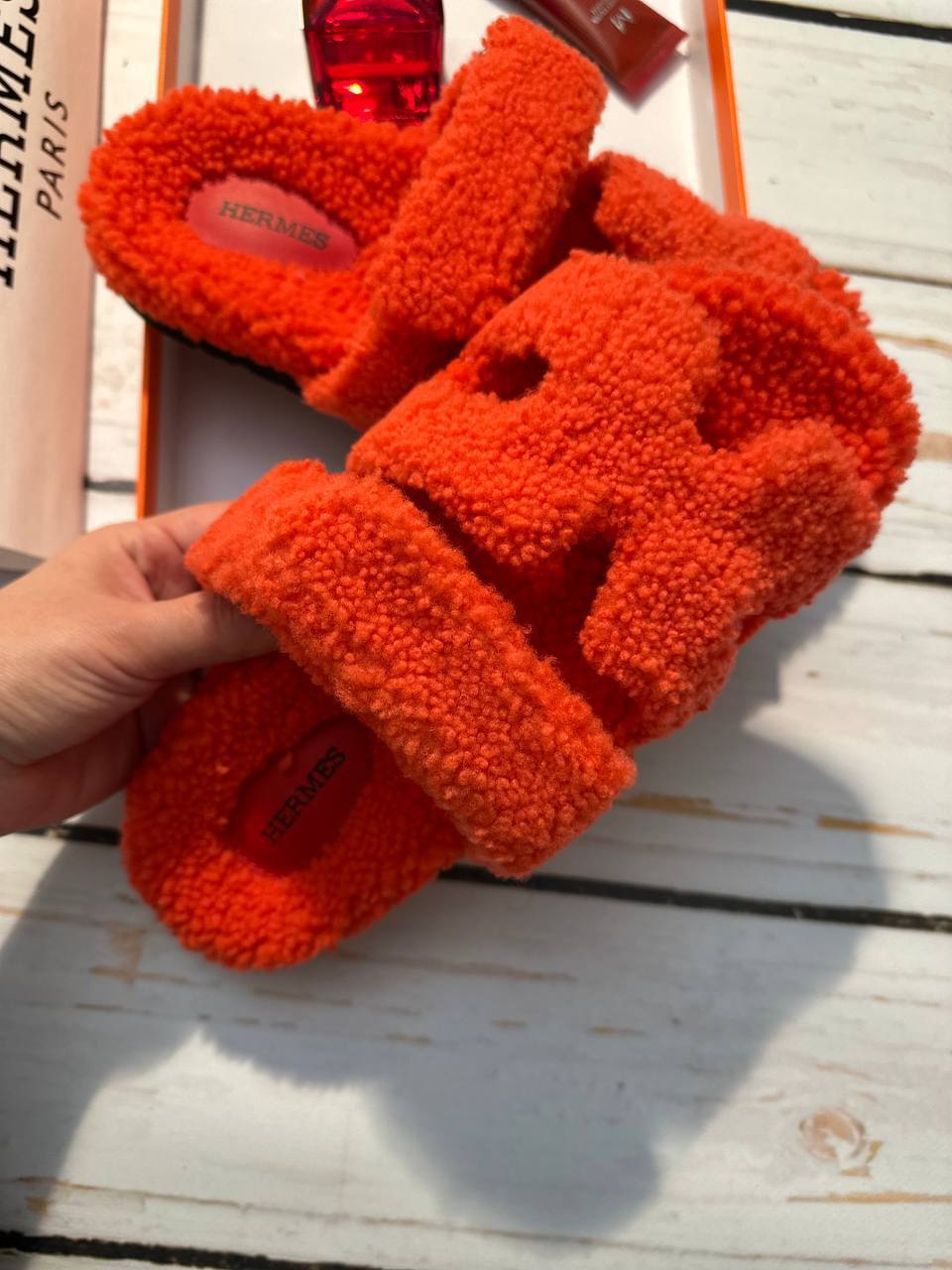 Красные шлепанцы Hermes - эксклюзивный аксессуар из итальянской коллекции, идеальный дополнение к вечернему наряду для женщины со вкусом.
