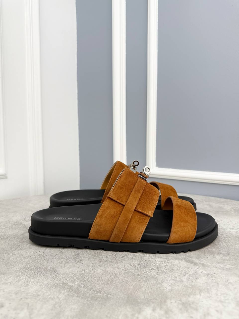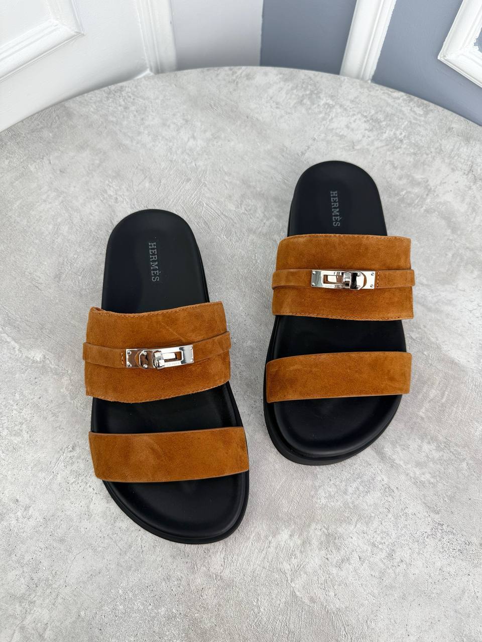 Коричневые шлепанцы Hermes - классика итальянского дизайна, гарантирующая высшее качество из Италии для настоящего гурмана.