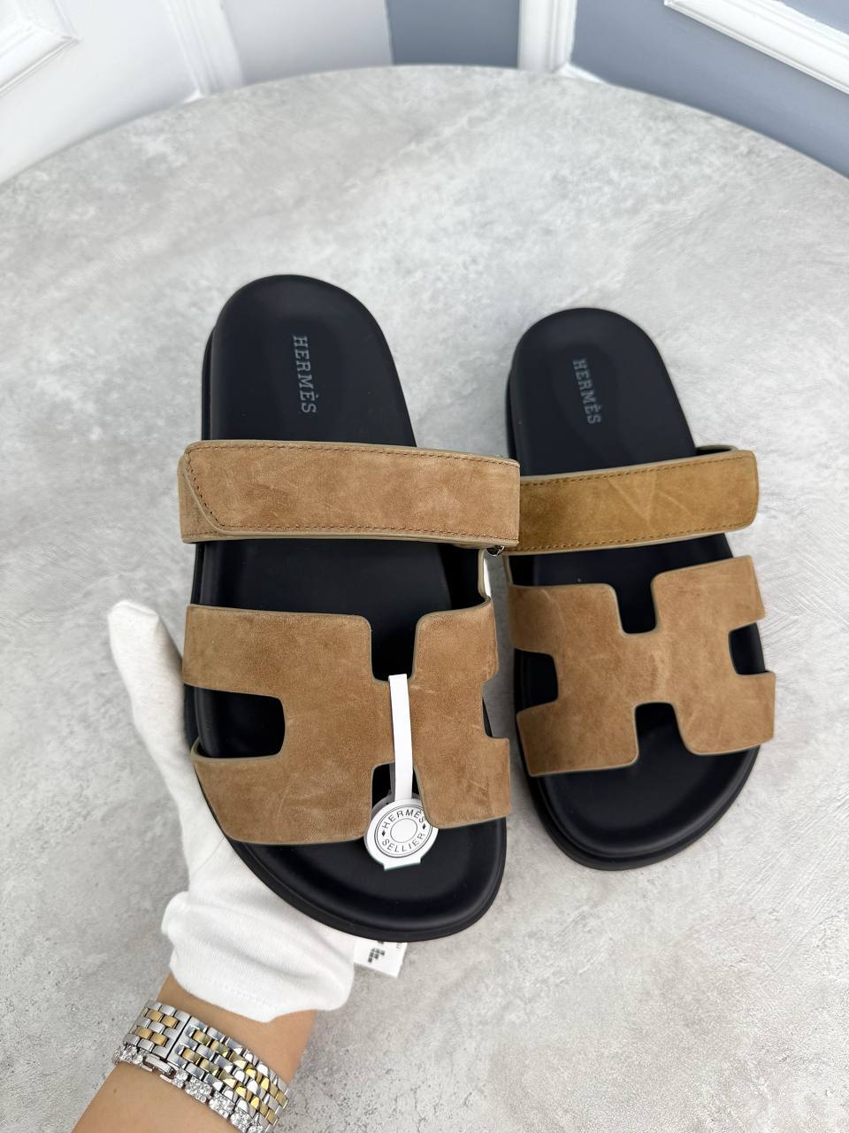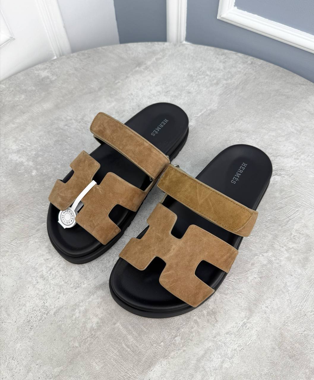 Эксклюзивная коллекция мужской обуви Гермес - светлокоричневые шлепанцы с уникальным дизайном, гарантирующие неповторимый стиль и статус.