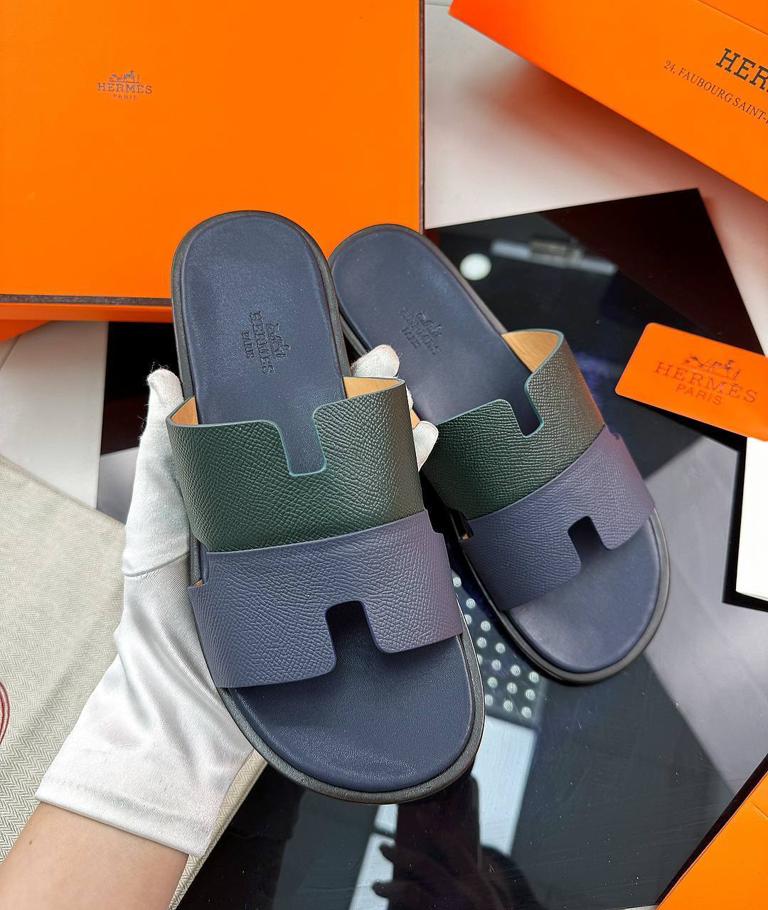 Темно-синие шлепанцы Hermès - идеальный акцент для мужчин с высшим вкусом и стремлением к элегантности в своей гардеробной.