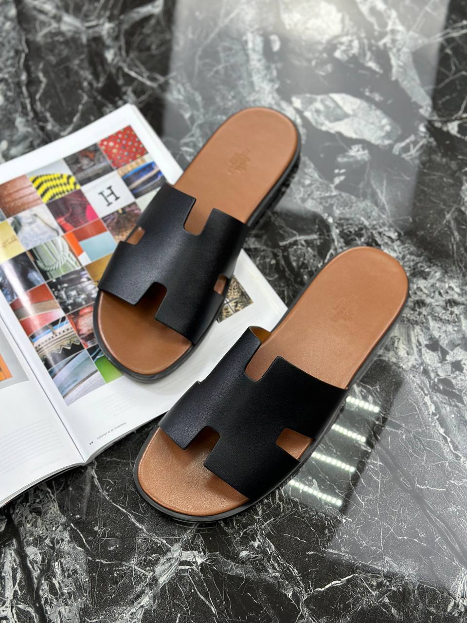 Мужские шлепанцы Hermes чёрные - элегантный акцент для стильного gentlemen, создавайте свою уникальную моду с брендовой одеждой премиум-класса!