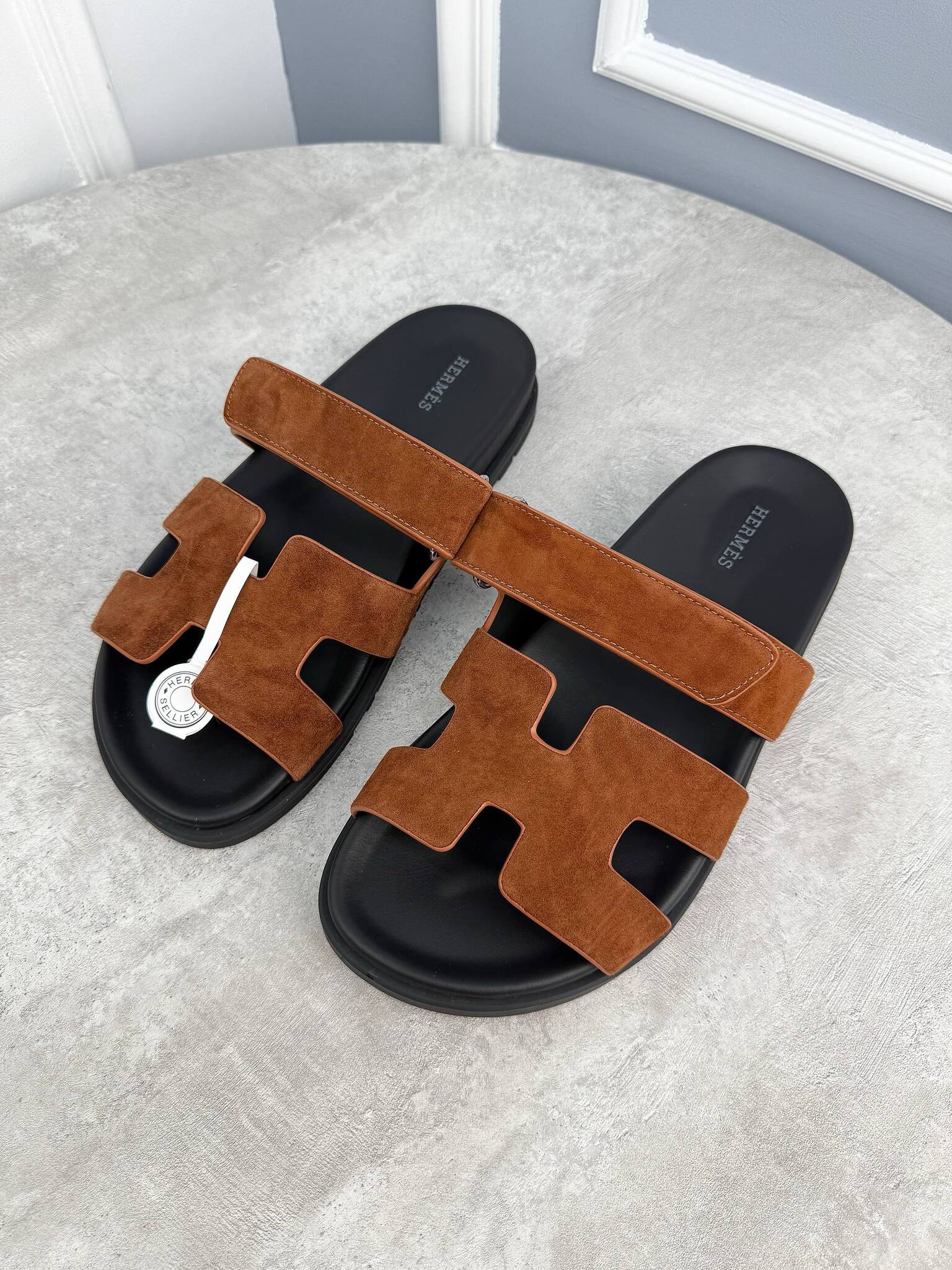 Коричневые шлепанцы Hermes - классика мужской моды с высшим качеством и стильным видом.