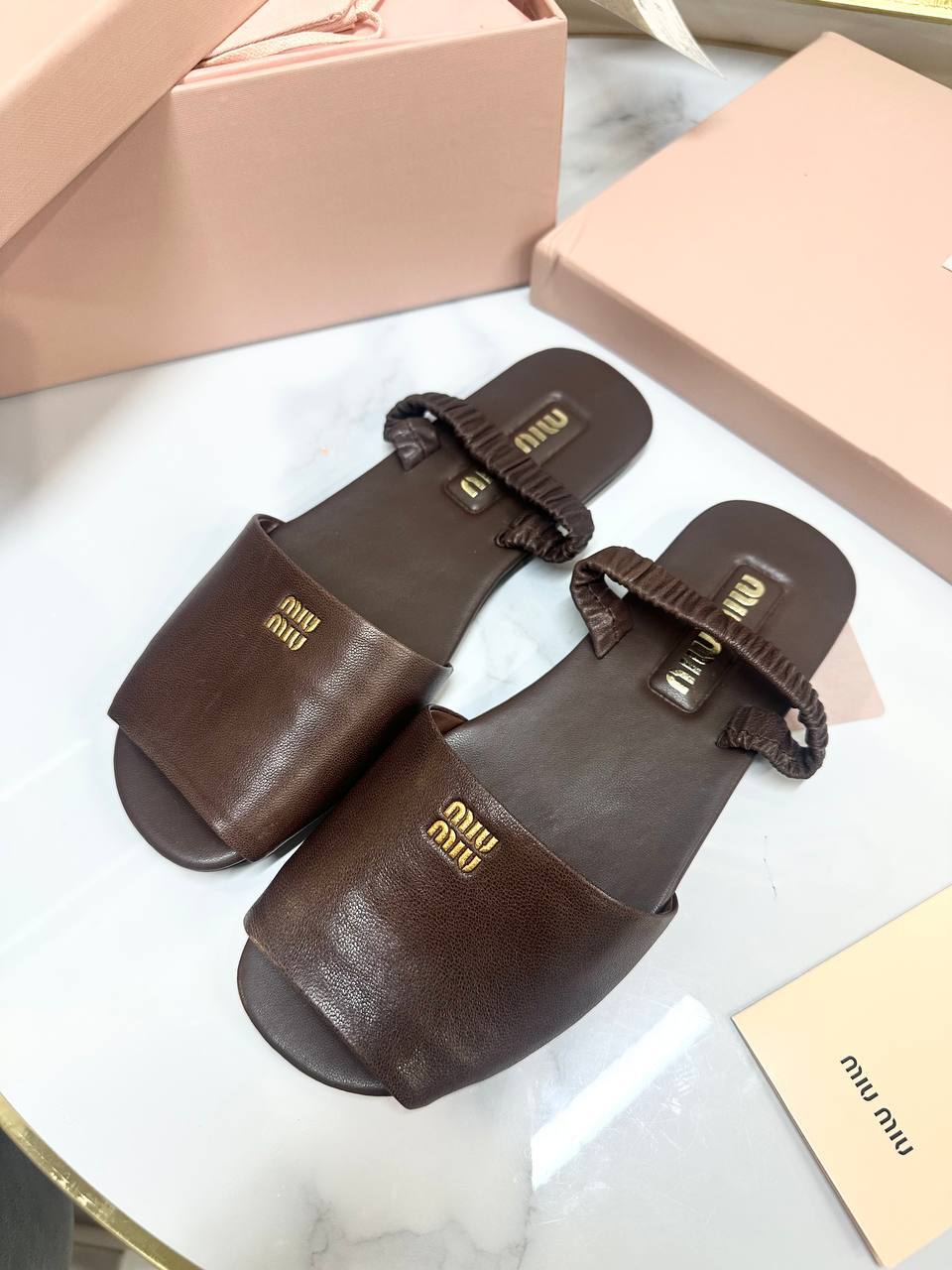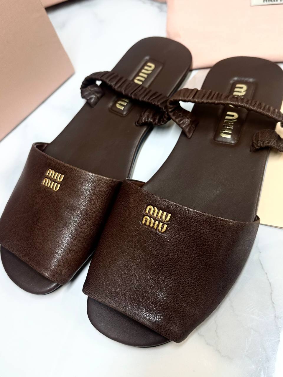 Женские шлепанцы MIU MIU коричневые - идеальный аксессуар для любительницы модной и роскошной одежды мечты.