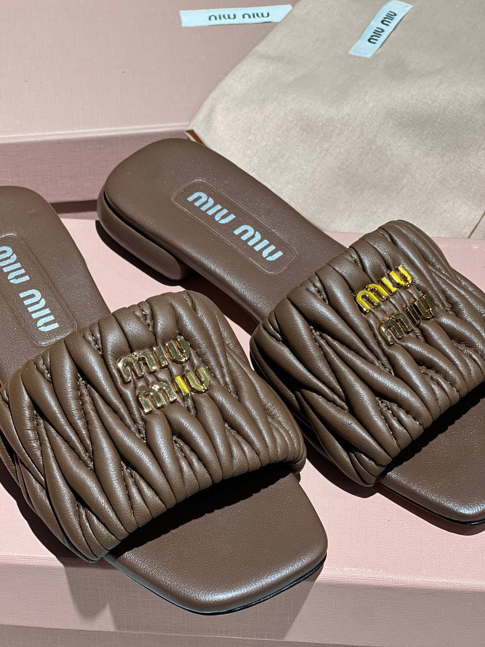 Женские шлепанцы MIU MIU коричневые - премиум-стиль для элегантных дам, дополняемый высшим качеством и изысканным дизайном.