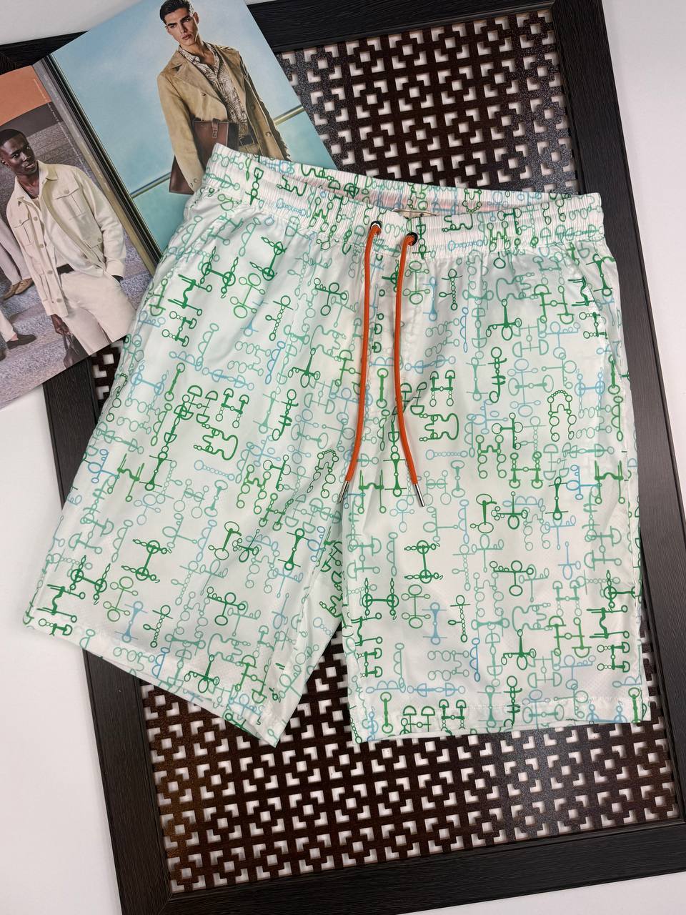 Мужские шорты Hermes - элегантный акцент в вашем гардеробе, актуальный для мужчин с чувством стиля и любящих высокую моду.
