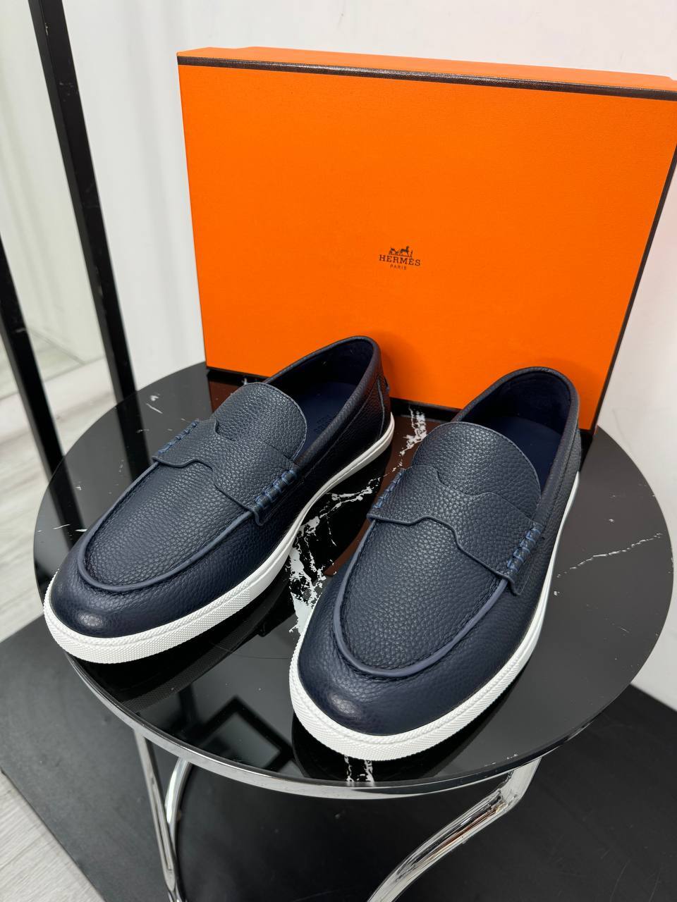 Мужские слипоны Hermes синие - идеальный выбор для гурмана стиля, дополняющий любой образ сочетанием роскоши и элегантности.