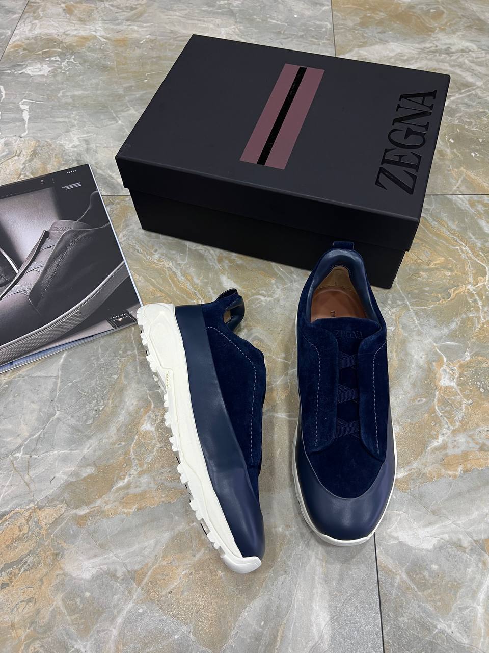 Мужские слипоны Zegna синий с мехом - элегантный акцент для мужчины со вкусом и высоким стандартом одежды