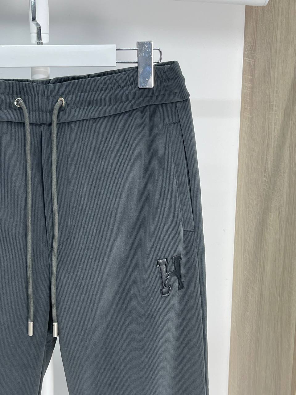 Мужские спортивные штаны Hermes – воплощение премиального качества и безупречного стиля. Плотный темно-серый хлопок, удобный крой и фирменный логотип. Идеально для тех, кто ценит комфорт и роскошь.