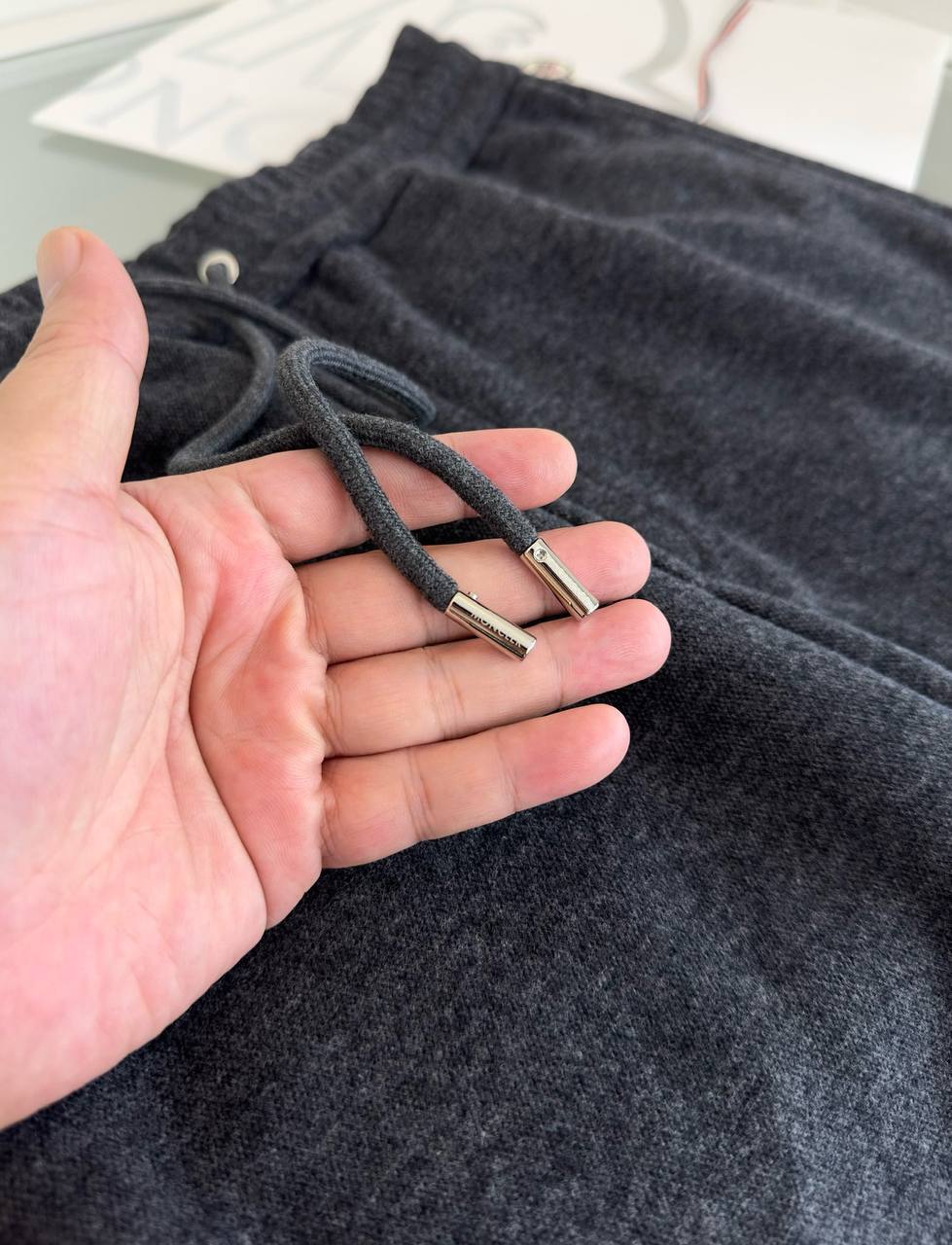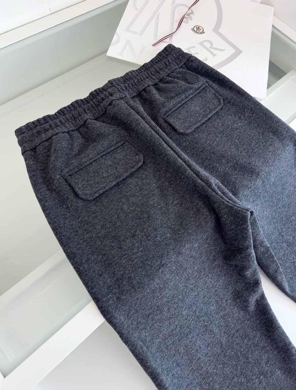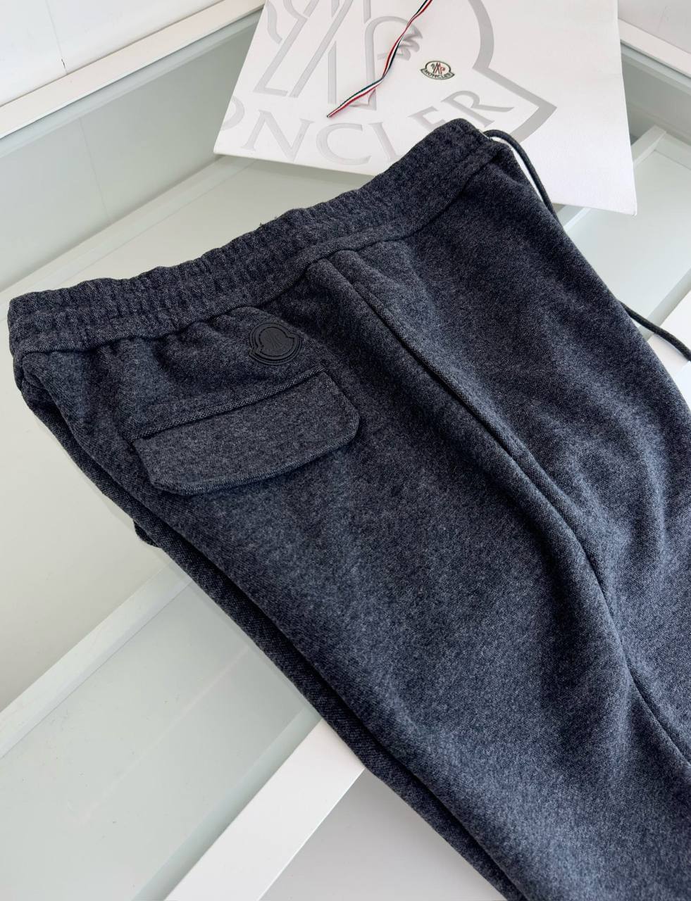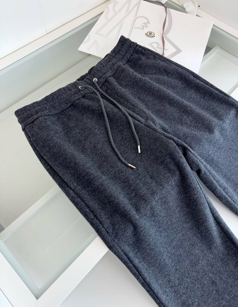 Мужские спортивные штаны Moncler - серые эксклюзивные штаны из коллекции Люкса, идеальные для спорта и повседневной жизни.