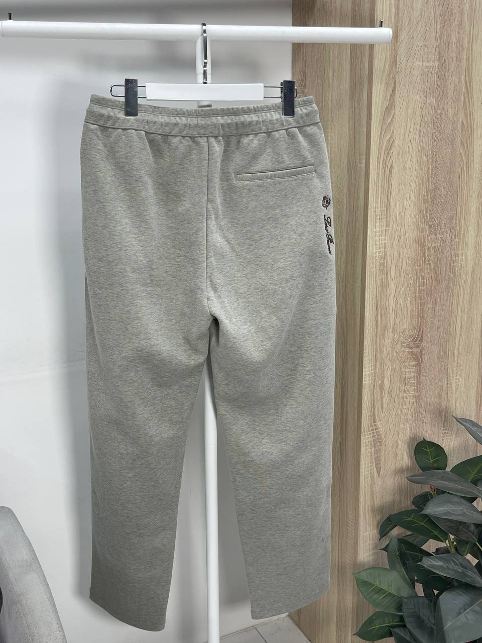 Мужские спортивные штаны Loro Piana: воплощение люкс-комфорта. Свободный крой, серый шерстяной трикотаж и эластичный пояс – идеальный выбор для тех, кто ценит премиальный стиль и безупречный стиль Loro Piana.