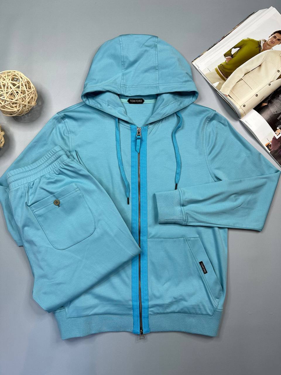 Мужской спортивный костюм Tom Ford голубой - элегантное сочетание стиля и комфорта для мужчин, ценящих высокое качество одежды.