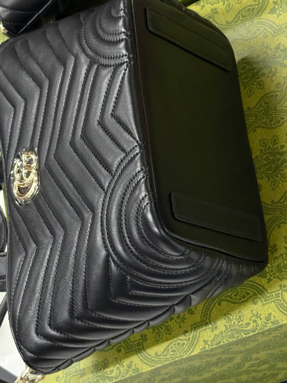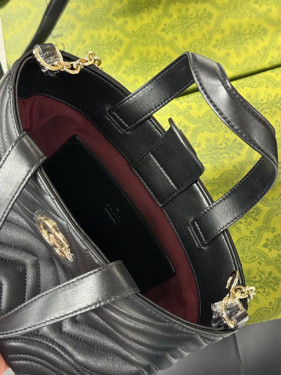 Gucci Женская Чёрная сумка 20х17.5х14 см – воплощение люкс-стиля. Объемный тоут с зубчатым рельефом и узнаваемым логотипом. Идеальный выбор для тех, кто ценит безупречный вкус и эксклюзив.