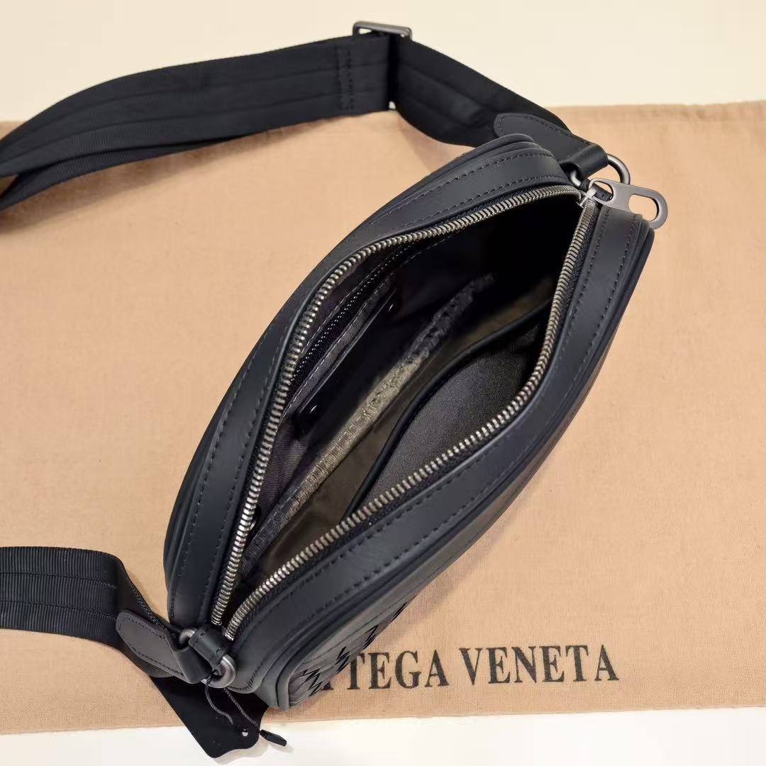 Для элегантного джентльмена - чёрная сумка-мессенджер Bottega Veneta, объединяющая роскошь и функциональность в совершенную форму.