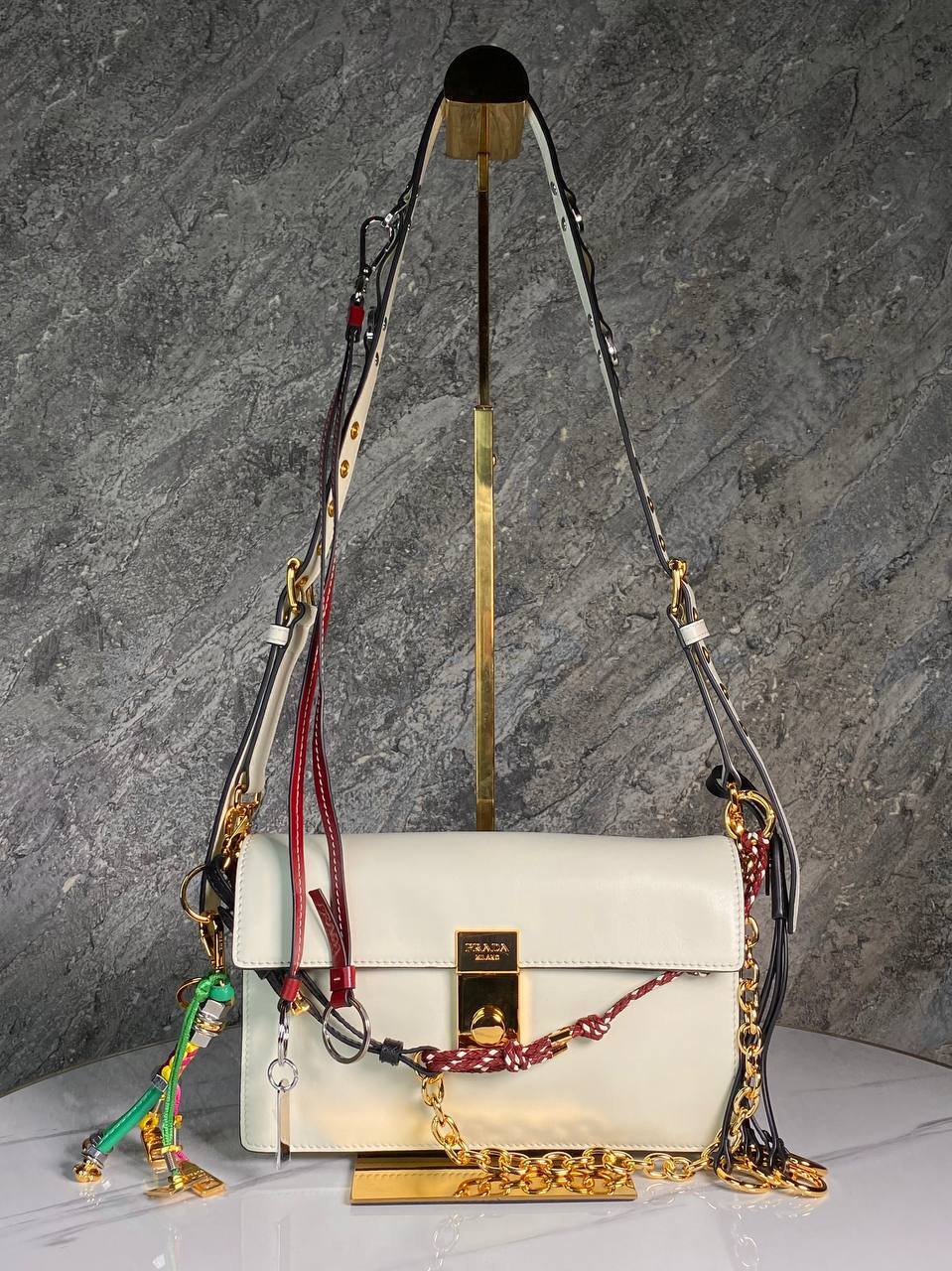 Элегантная женская сумка Prada белая, размеры 24х13,5х6 см - идеальный акцент для стильной женщины с отличным качеством.