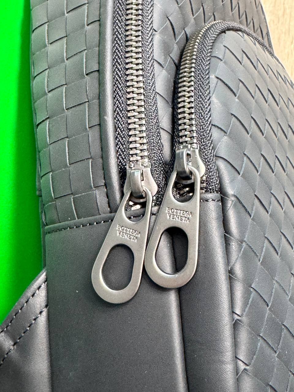 Для мужчины с чувством стиля и любящего luxury - чёрная мужская сумка-слинг Bottega Veneta, идеальный акцент на элегантный образ.