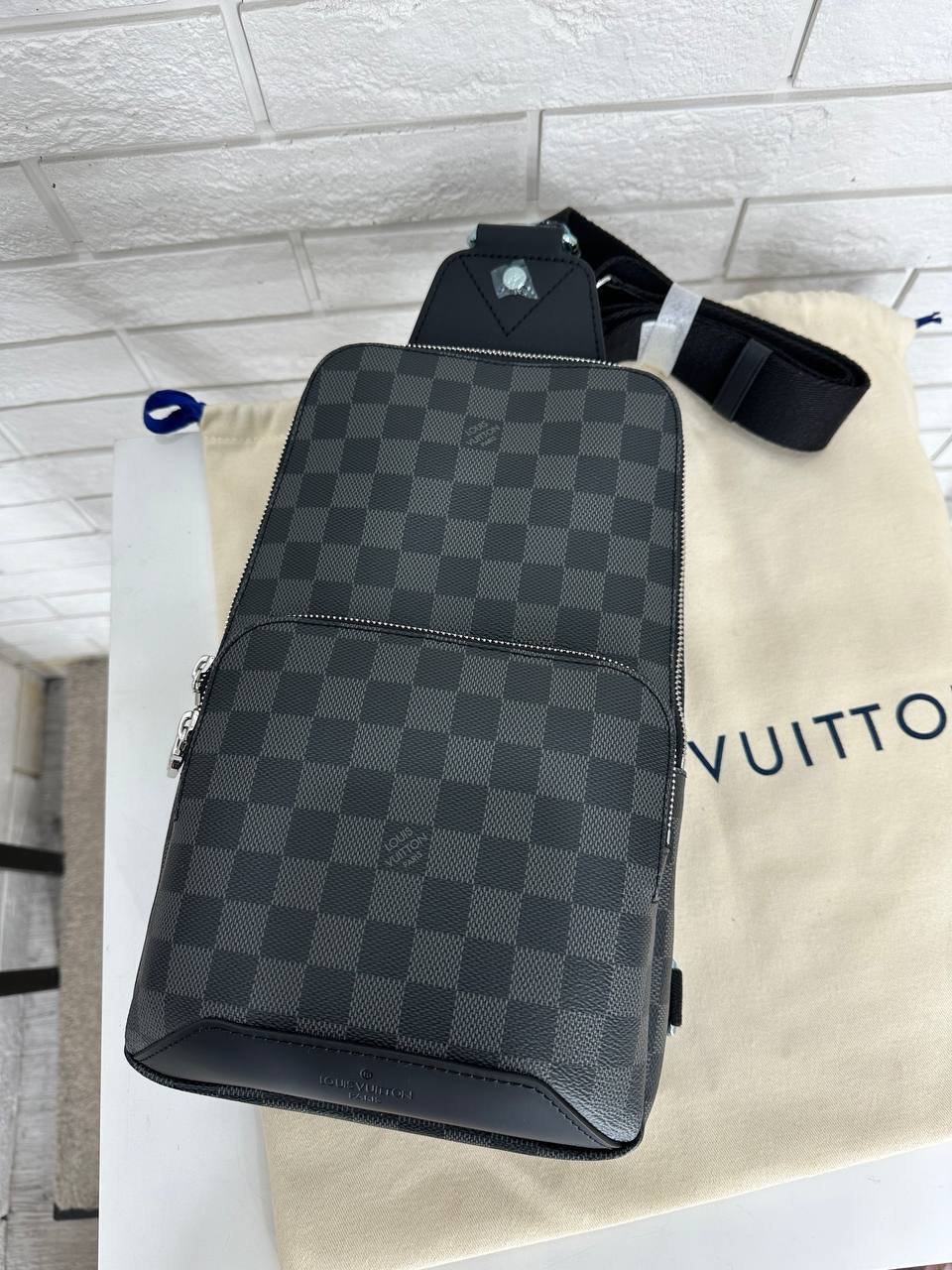 Чёрная мужская сумка-слинг Louis Vuitton - классика для настоящего гурмана, сочетает стиль и роскошь в одном изделии.