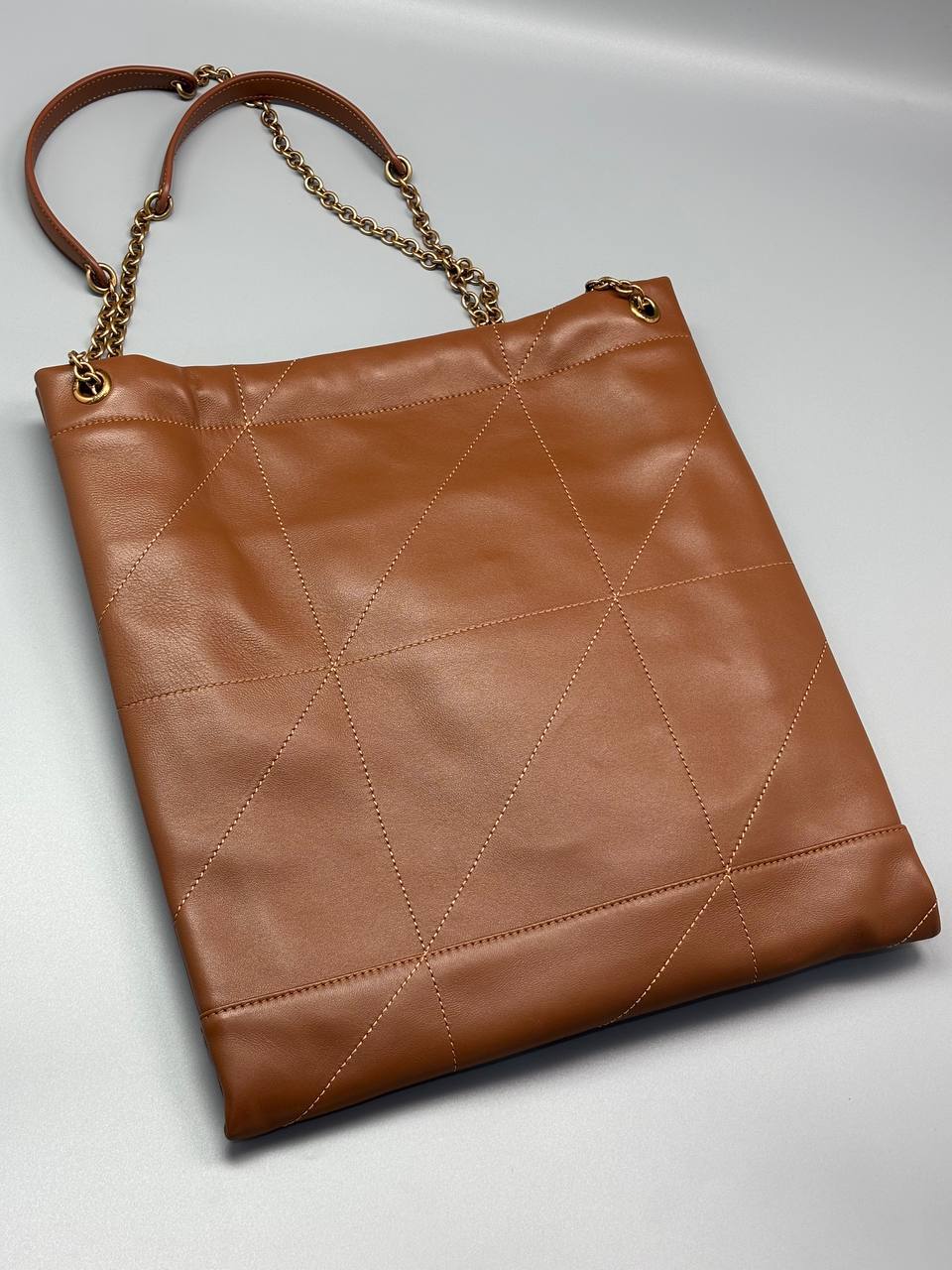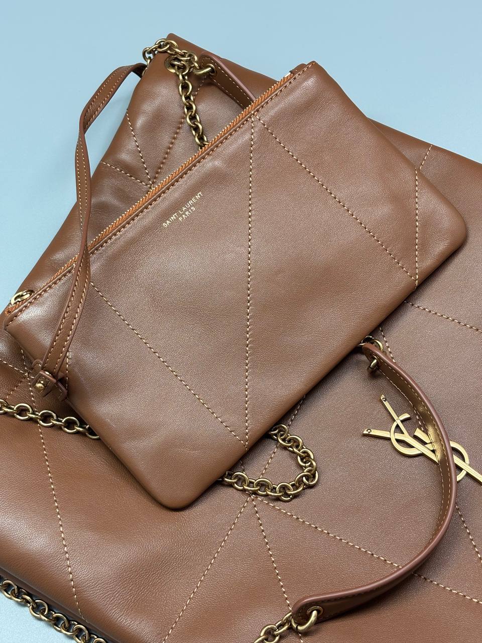 Элегантная женская сумка Yves Saint Laurent коричневая, размер 34х26х2 см - идеальный аксессуар для дам высшего класса.