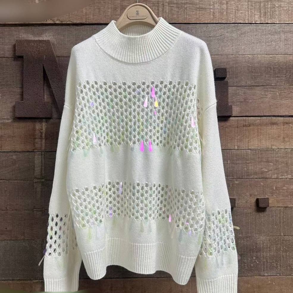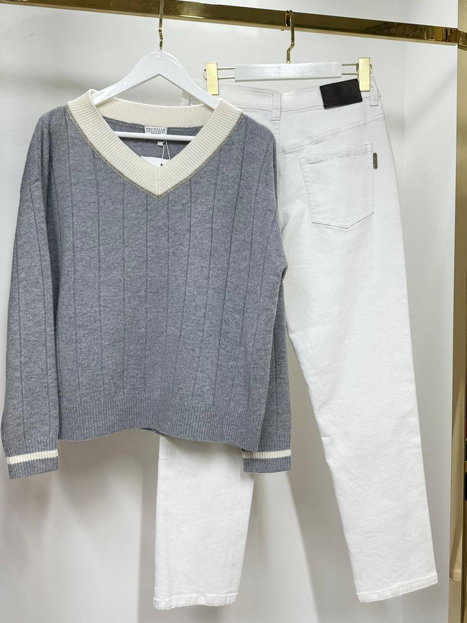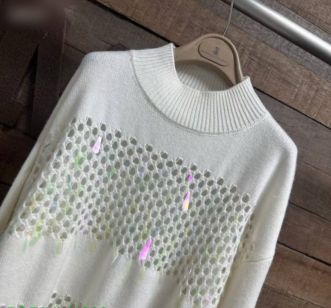 Brunello Cucinelli Женский Белый Свитер – воплощение безупречной эстетики. Тонкий кашемир, укороченный силуэт и вышивка создают элегантный образ, подчеркивающий вашу индивидуальность.