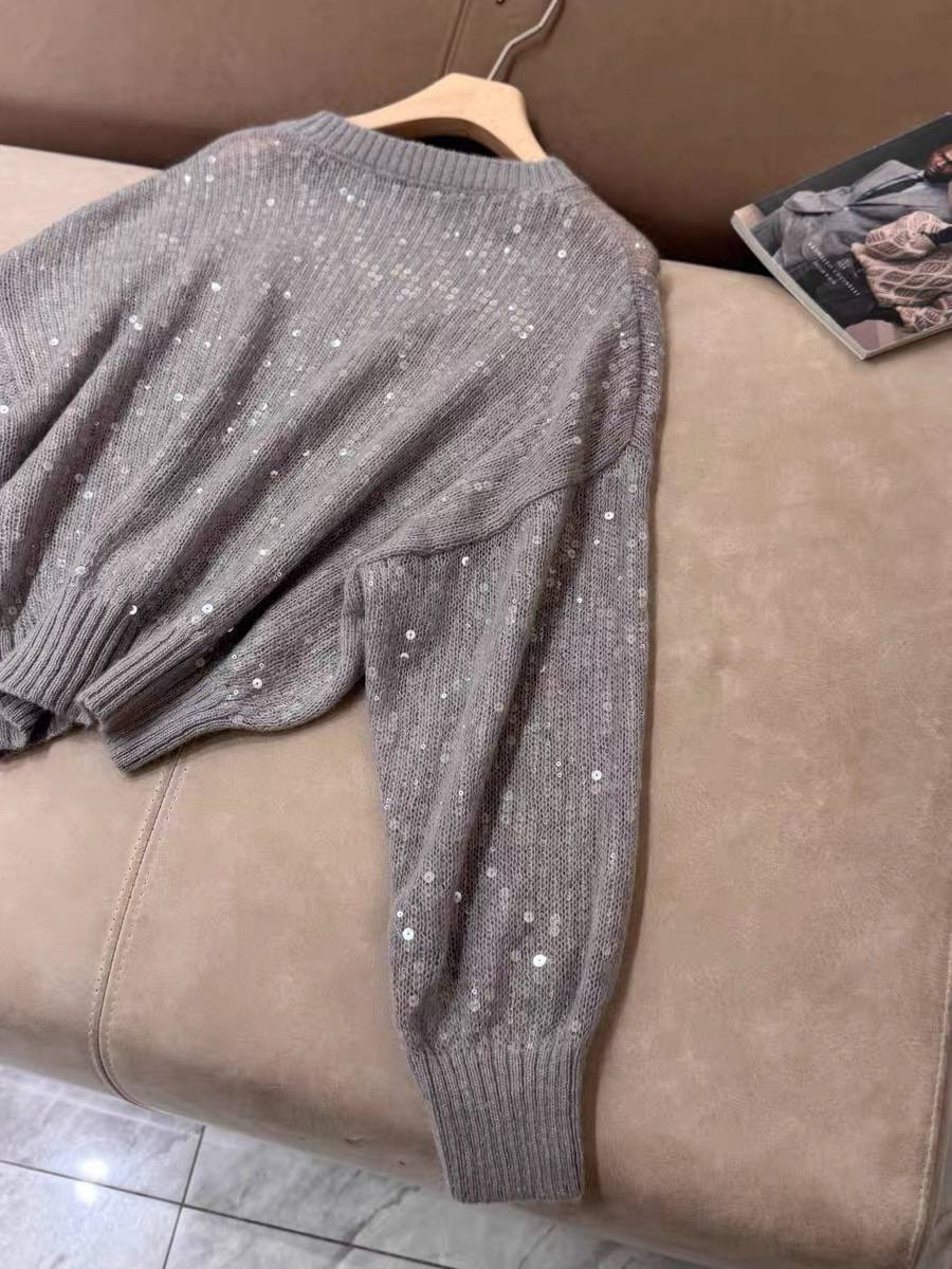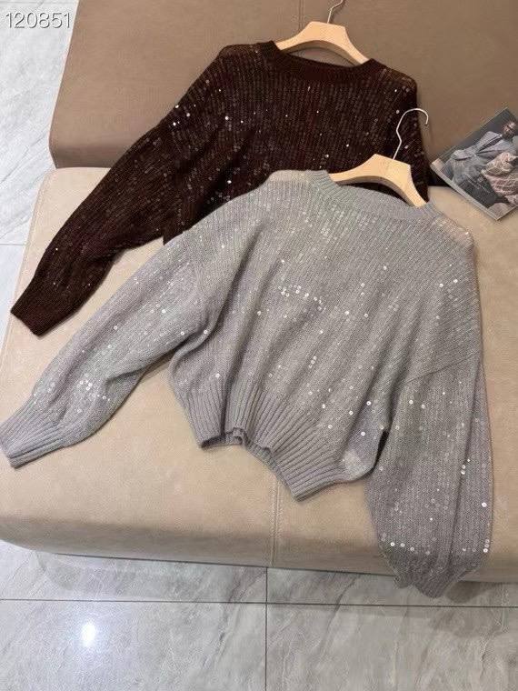 Женский свитер Brunello Cucinelli - элегантное сочетание бежевого, серого, черного и белого в одном из лучших образов премиум-женской моды.
