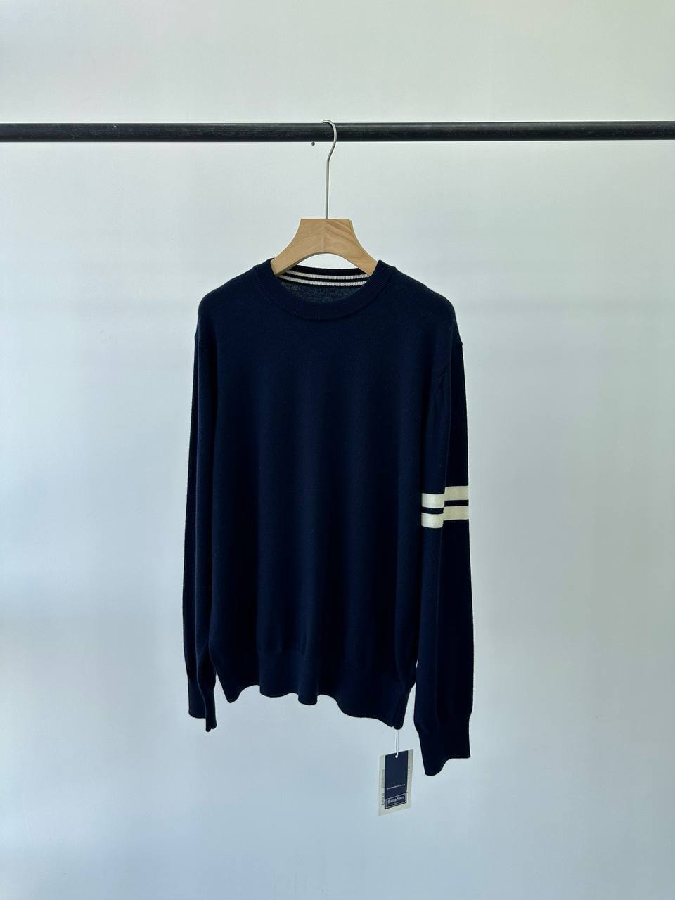 Темно-синий свитер Том Браун - классика мужской моды с элегантной эстетикой, идеальный выбор для стильного и утонченного gentleman.
