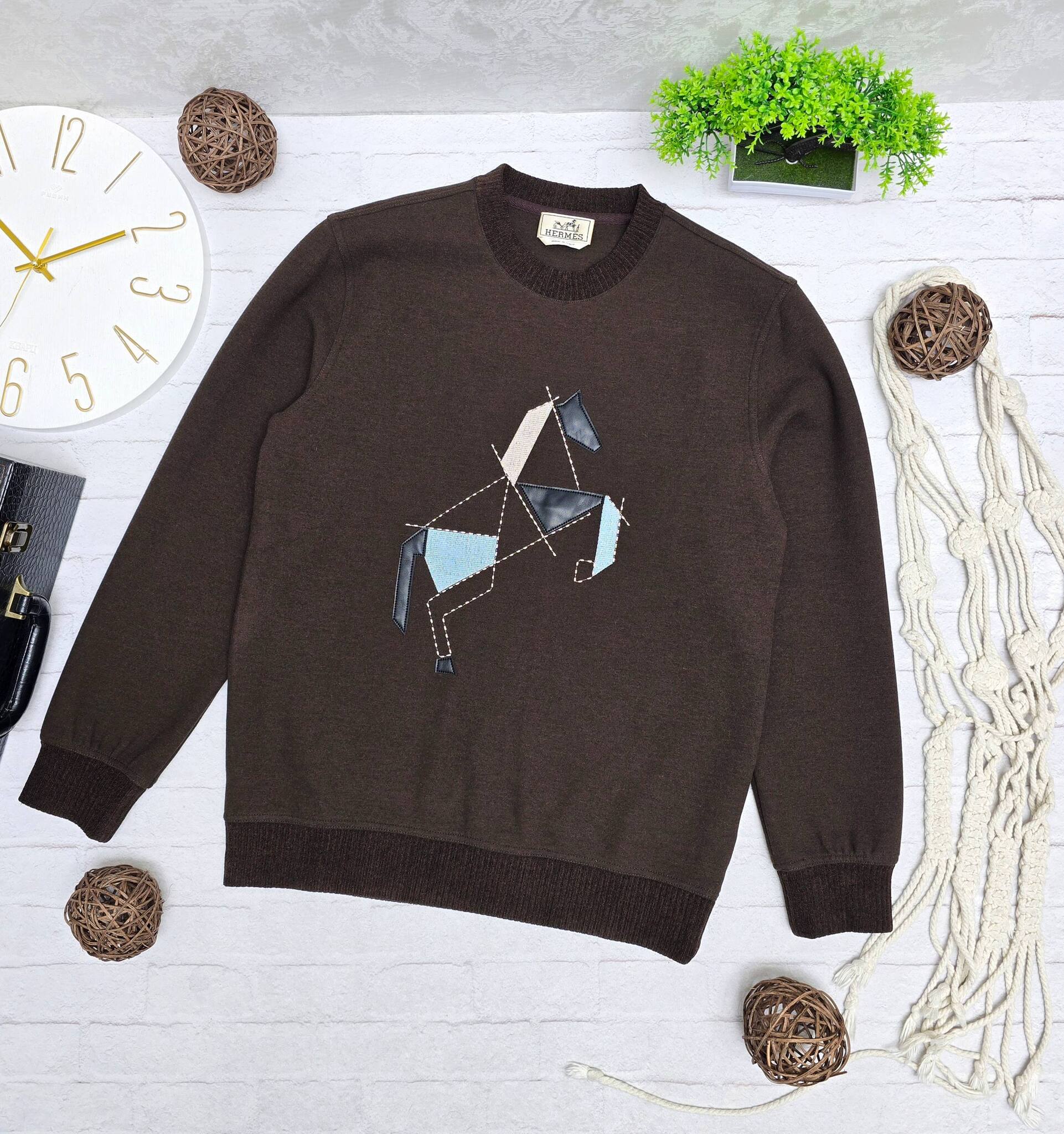 Мужской свитшот Hermes коричневый – воплощение высокой моды. Элегантный силуэт, премиальный хлопок и графичный рисунок лошади. Добавьте в свой гардероб нотку роскоши и безупречного стиля.