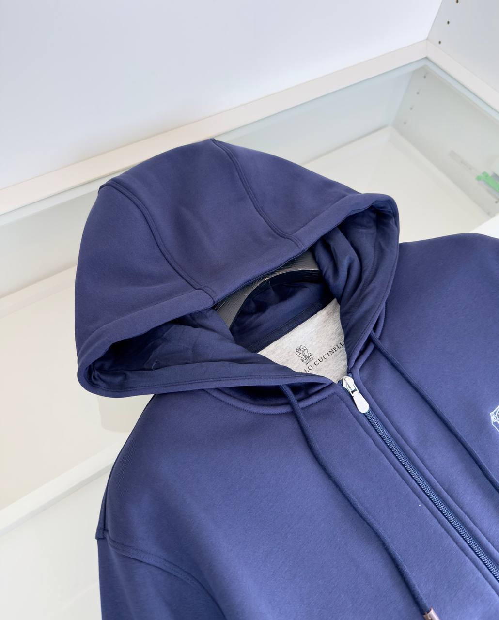 Brunello Cucinelli: Мужская толстовка синего гламура. Мягкий флис, капюшон, вышитый логотип. Создайте свой безупречный образ.
