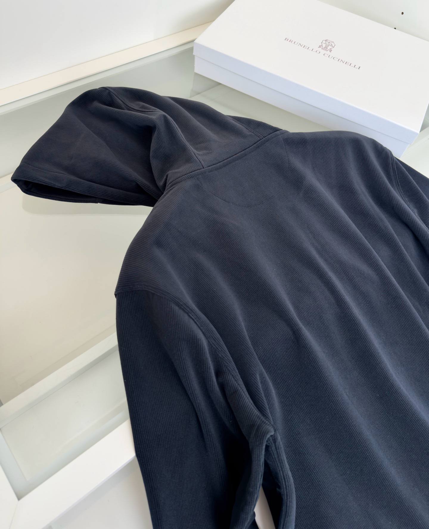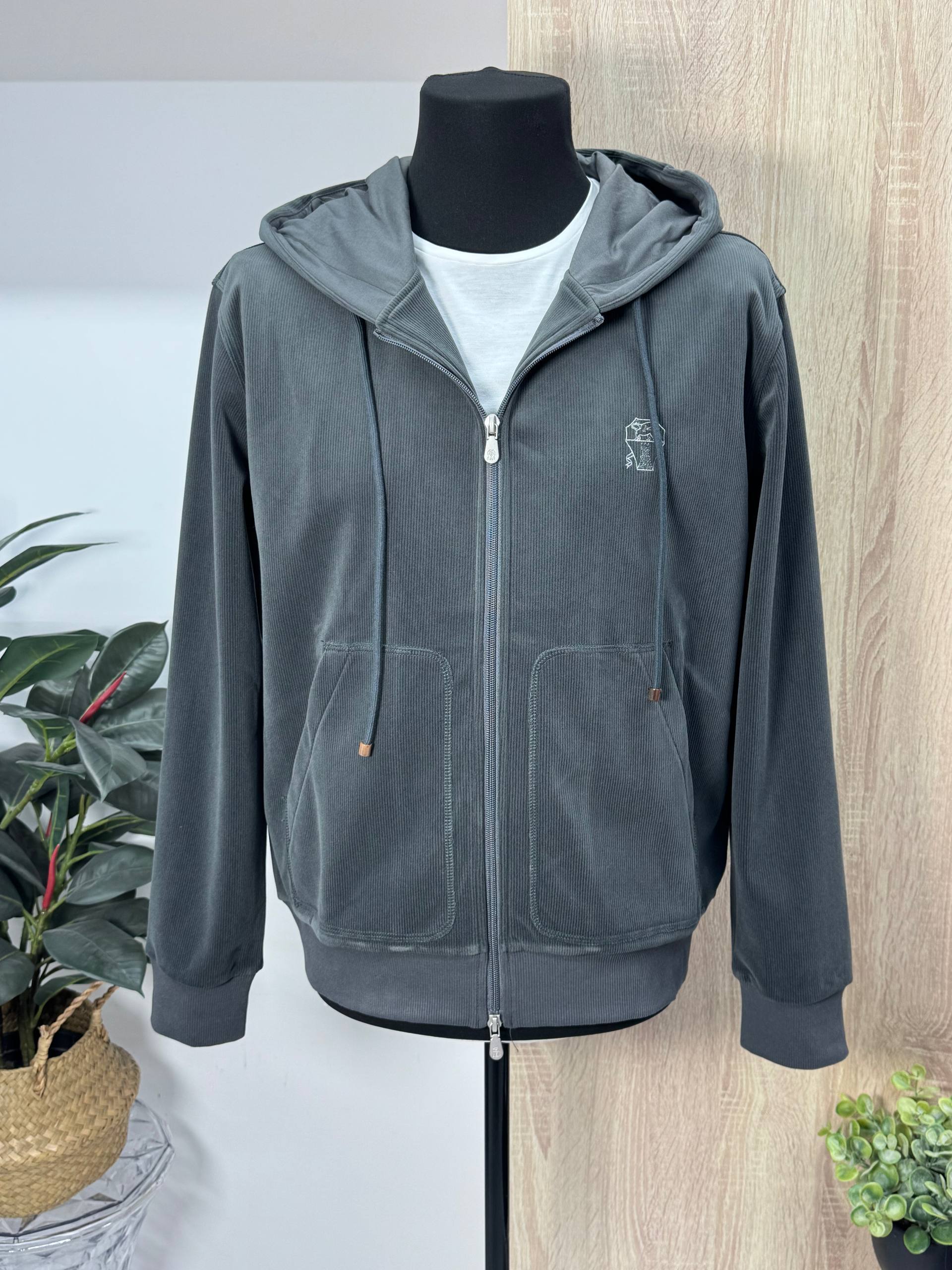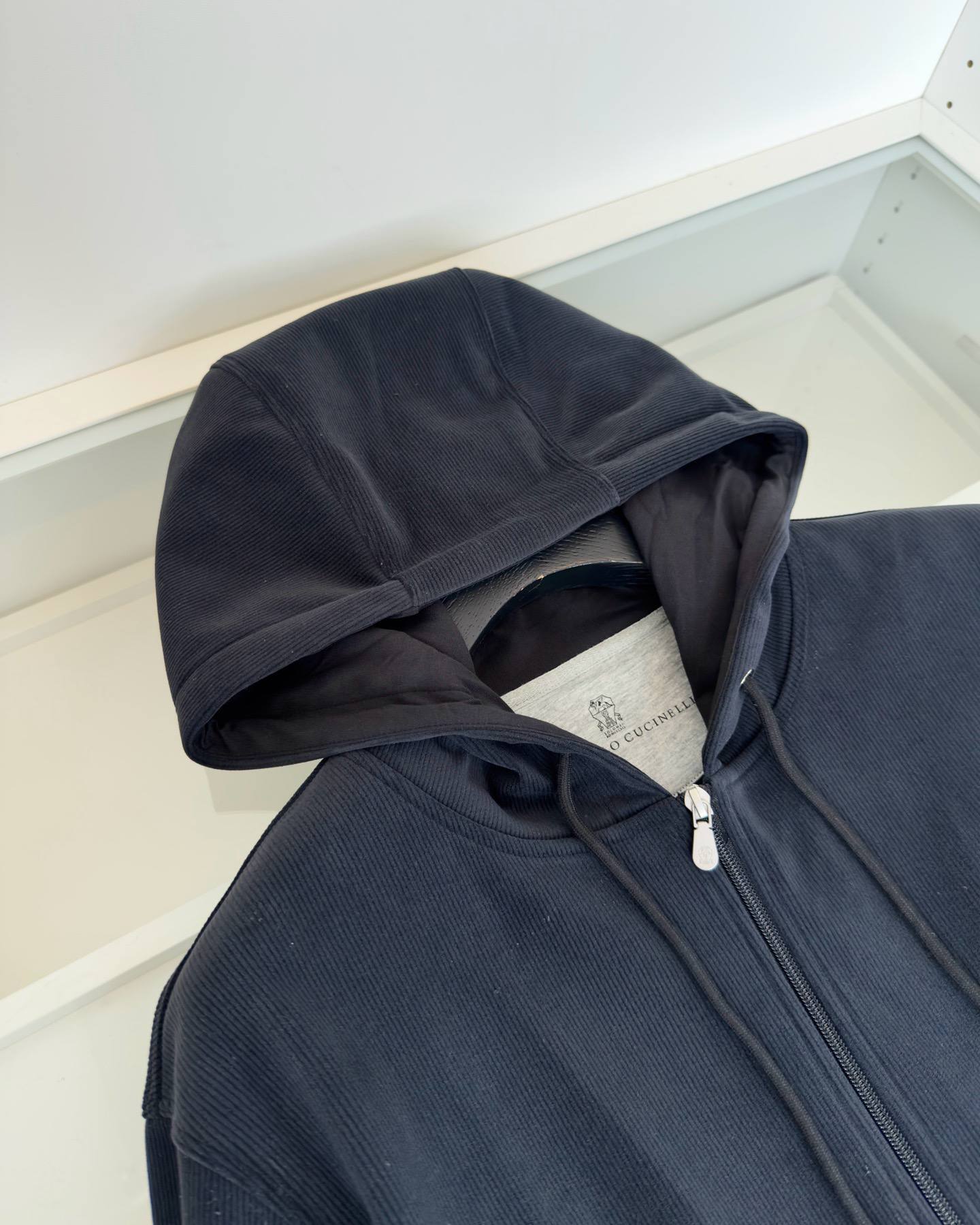 Brunello Cucinelli: Мужская толстовка в стиле люкс. Темно-синий цвет, рибон, молнии и узнаваемый логотип. Идеальный баланс комфорта и безупречного стиля.