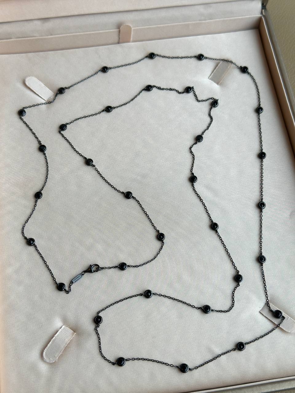 Ощутите безупречную эстетику с нашей точной цепью Tiffany & Co. 18 черных жемчужин – воплощение элегантности и лаконичности. Идеальный аксессуар для создания безупречного образа.