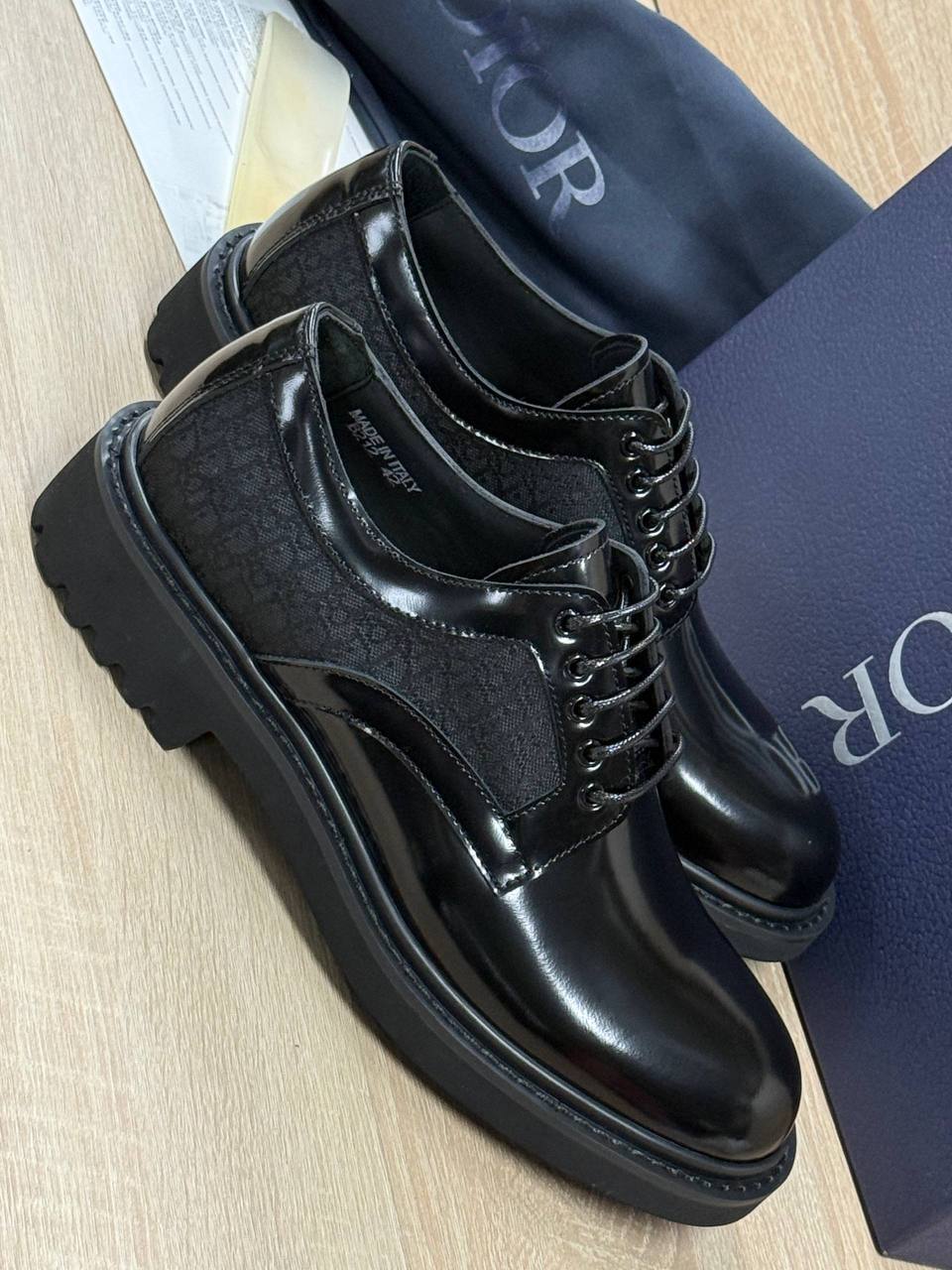 Мужская Dior чёрные туфли – воплощение премиального качества. Элегантный силуэт, массивная платформа и безупречная гладкая кожа. Создайте уверенный деловой образ с этой классикой.