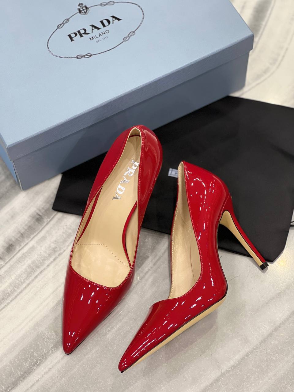 Красивая красная туфелька Prada - идеальный аксессуар для модной женщины, созданный в Италии с высшим качеством.