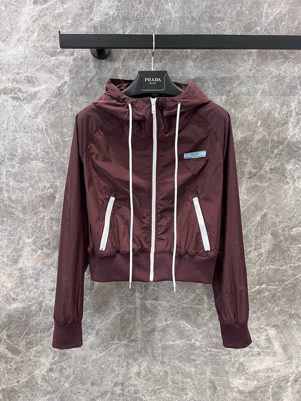 Для женской красавицы - бордовая ветровка Prada: элегантность и стиль в одном!