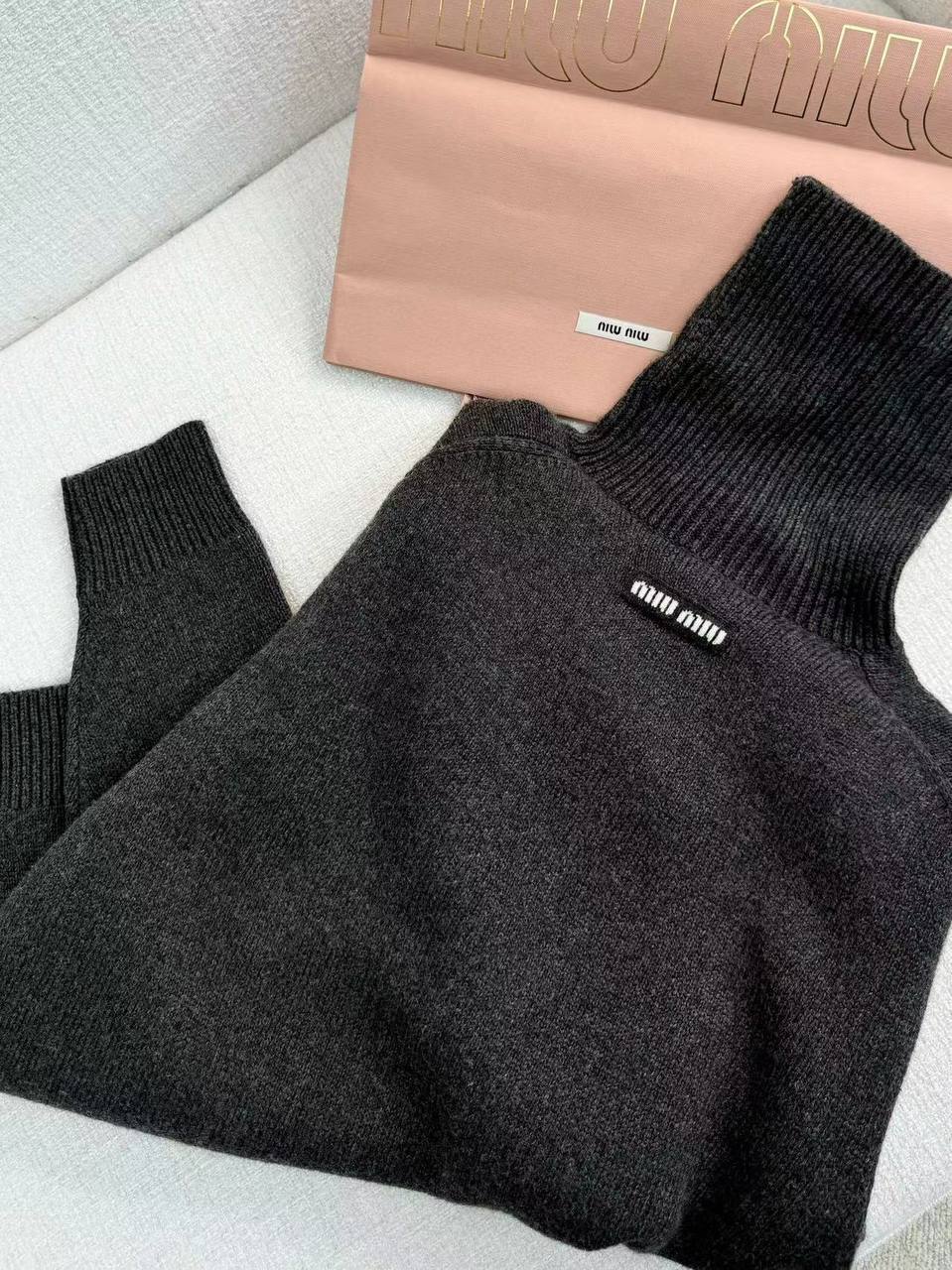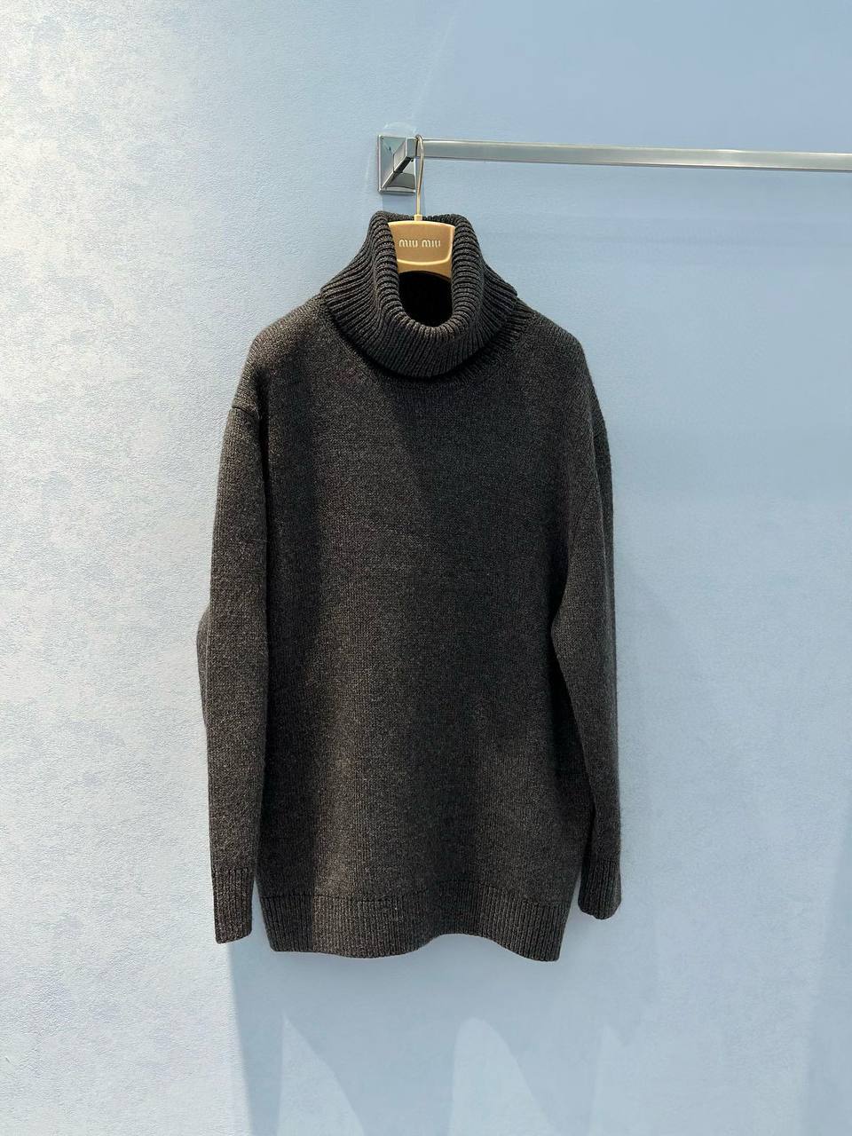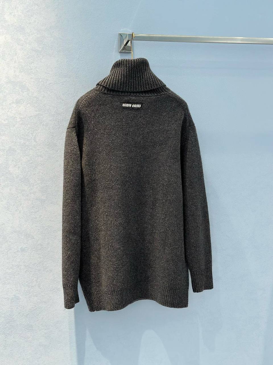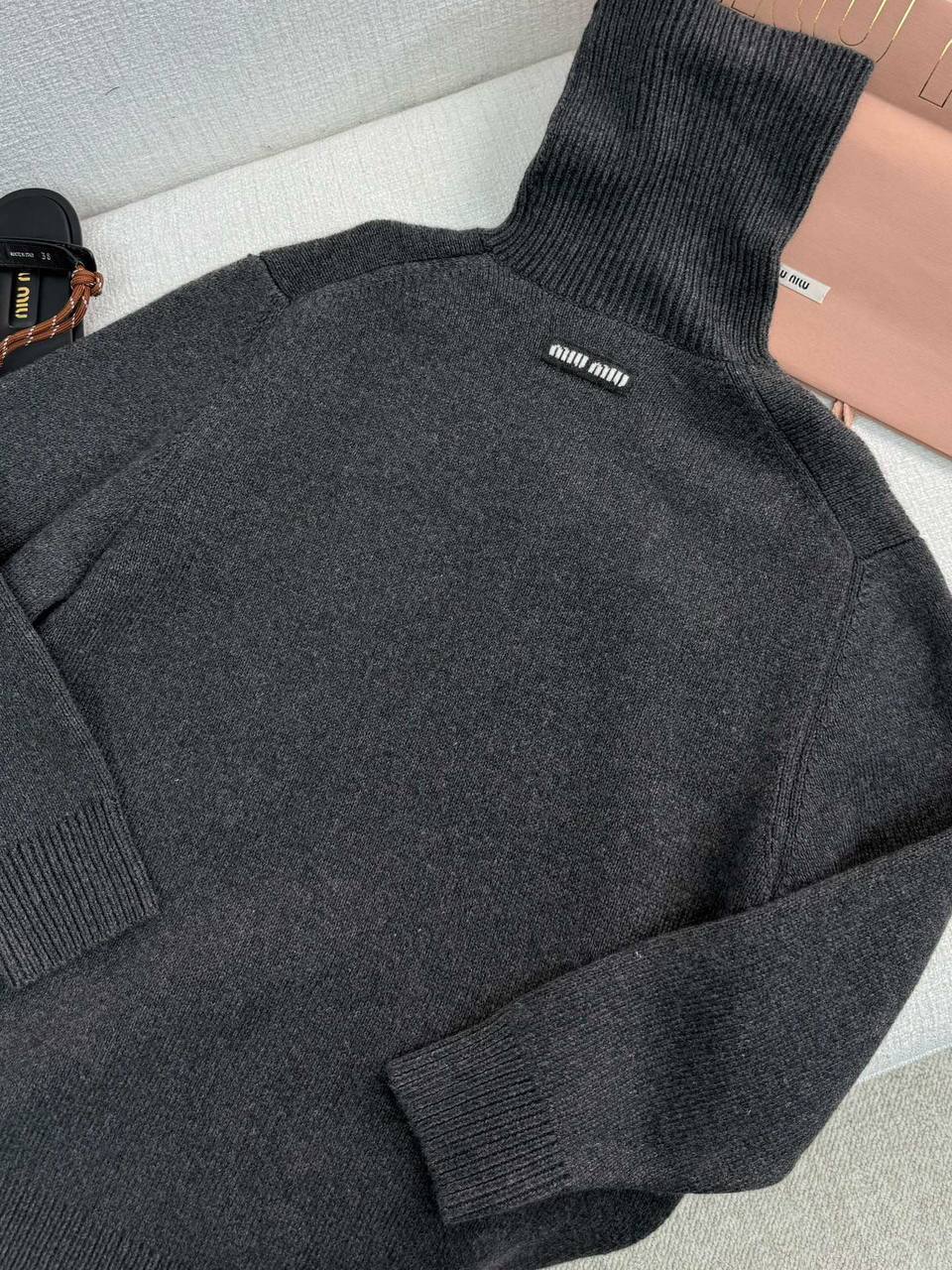Женская водолазка MIU MIU серая - стильное дополнение к любой модной коллекции для девушек с чувством индивидуальности и любящих уникальный дизайн.