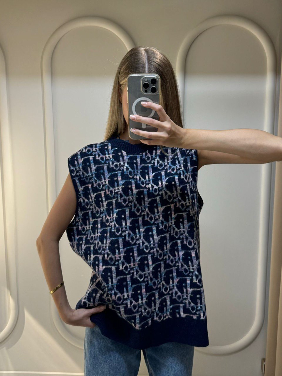 Добавьте изысканности в свой гардероб с Женским жилетом Dior Синий из ткани с фирменным принтом "Cannage". Идеальный элемент люкс-образа.