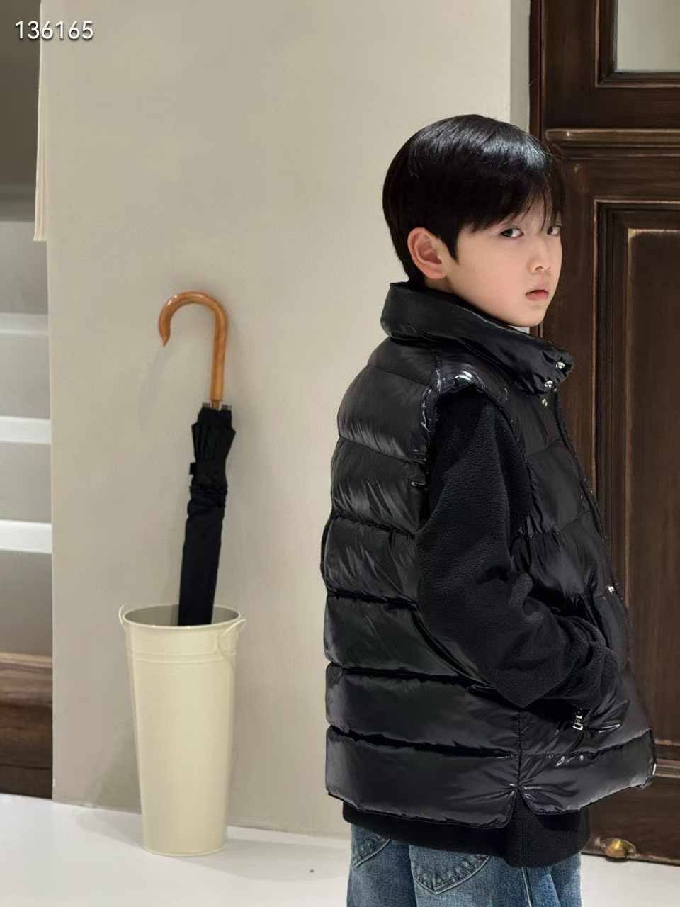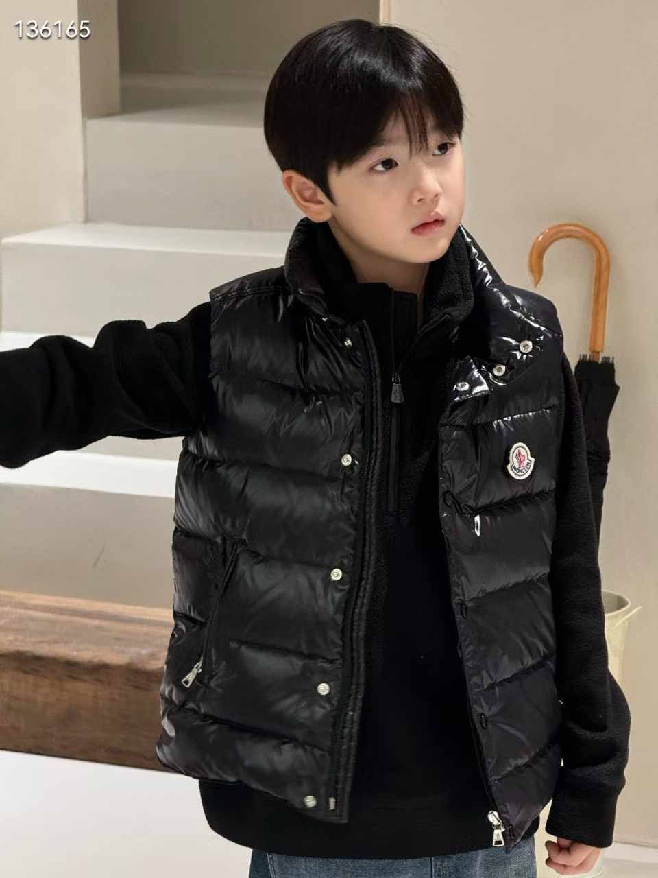 Чёрный детский жилет Moncler - классика для маленького гурмана, сочетающая функциональность и элегантный стиль.